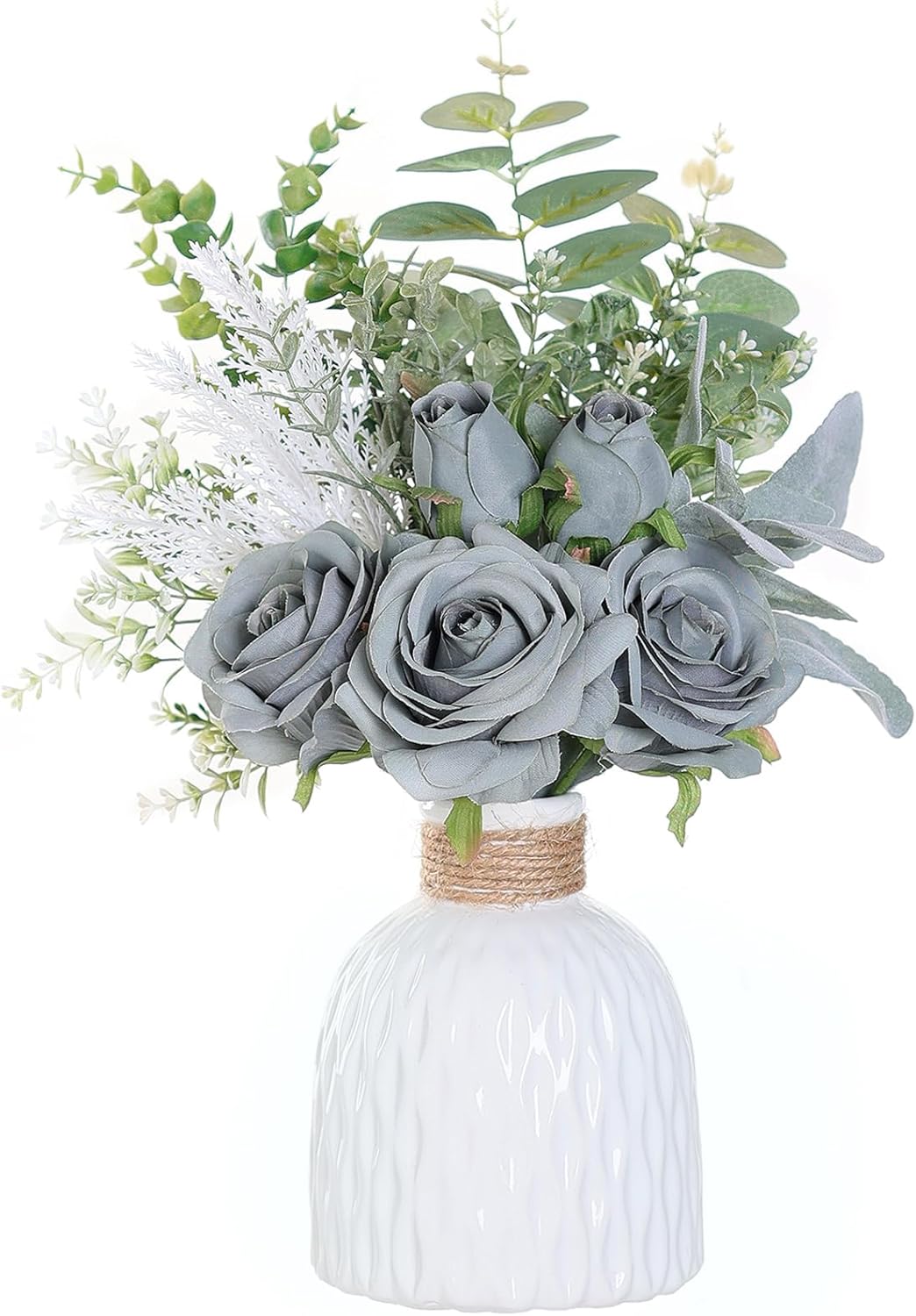 Silk Roses & Eucalyptus in Ceramic Vase Decor