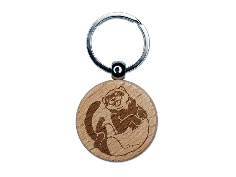 Silly Ferret on Back Engraved Wood Round Keychain Tag Charm