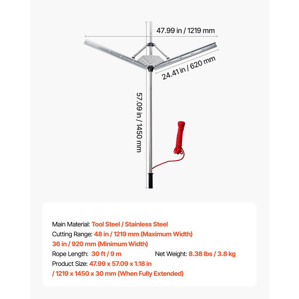 Silver Adjustable Aquatic Weed Rake Stainless Steel 36-48in Cutting Width with 30ft Rope for Ponds