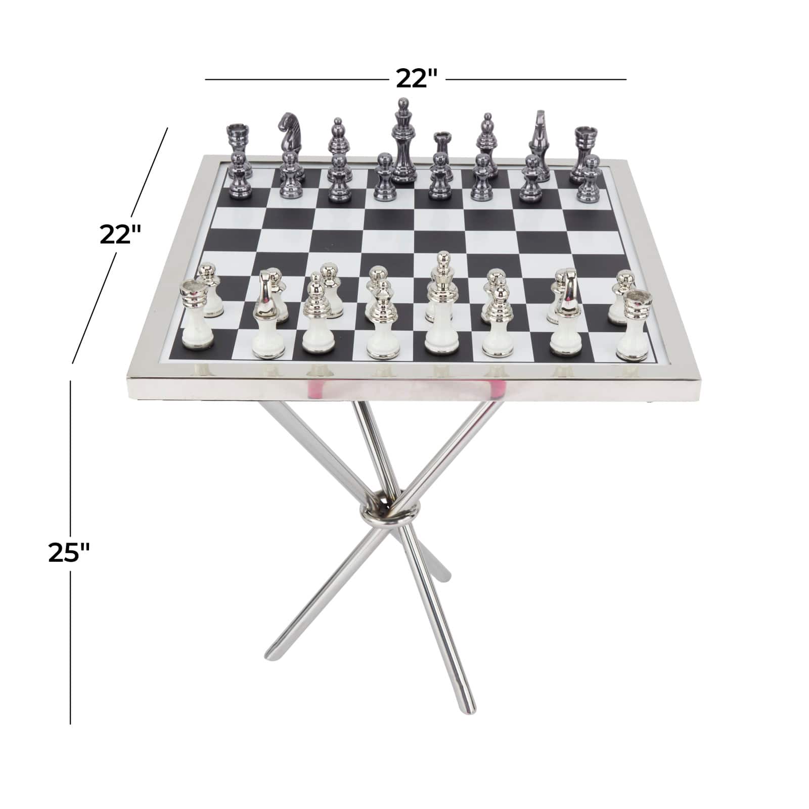 Silver Aluminum Contemporary Game Set Table, 4" x 25" x 22"