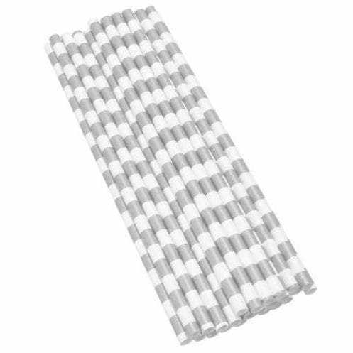 Silver and White Stripes Cake Pop Party Straws
