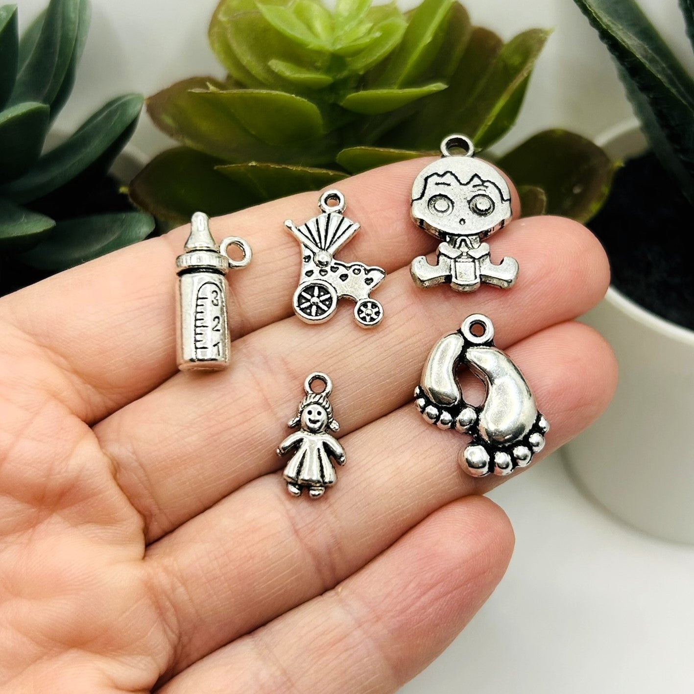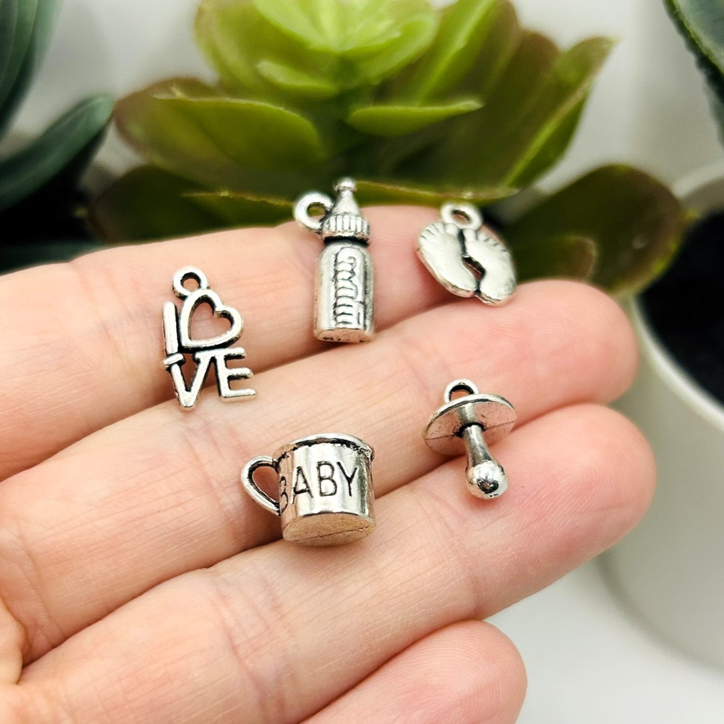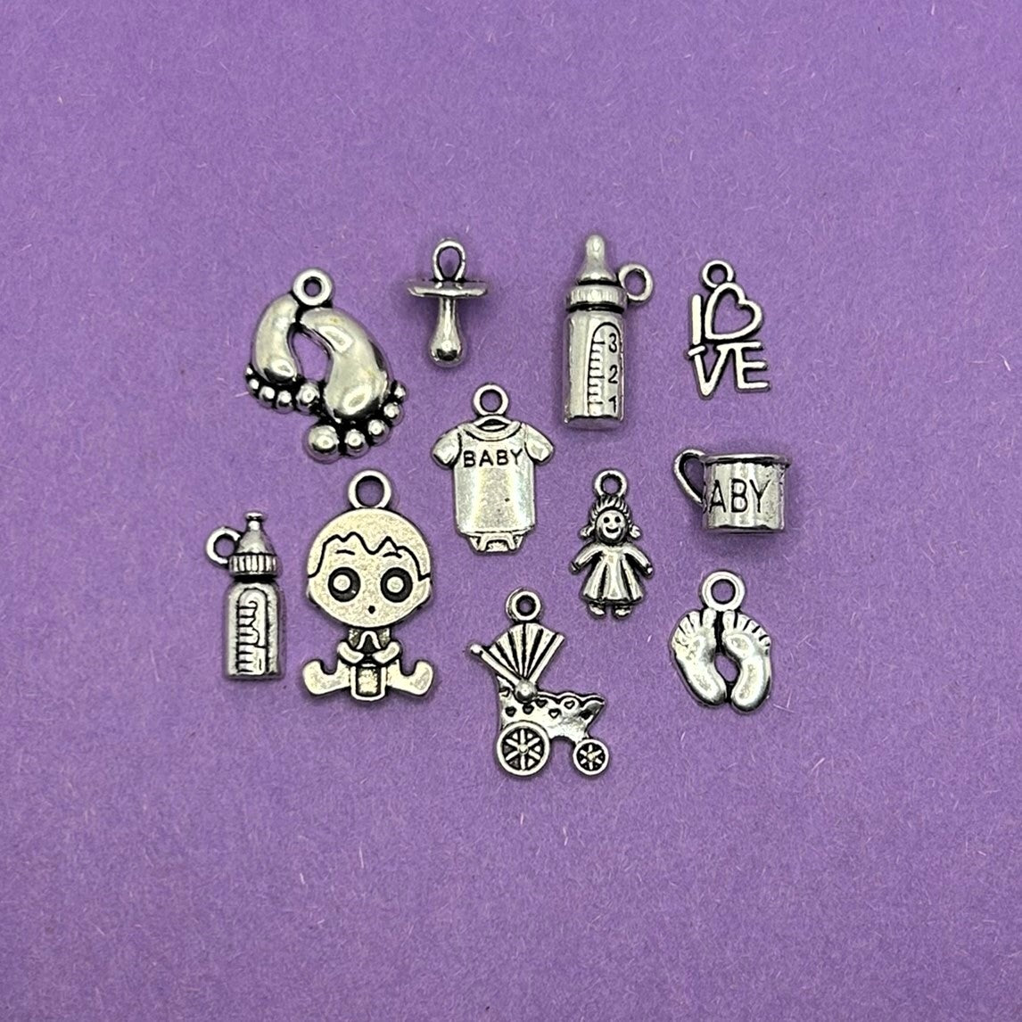 Silver Baby Shower Mix Charms, appx 200 pieces - 10 styles