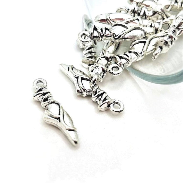 Silver Ballet Slipper Charms, 23x7mm