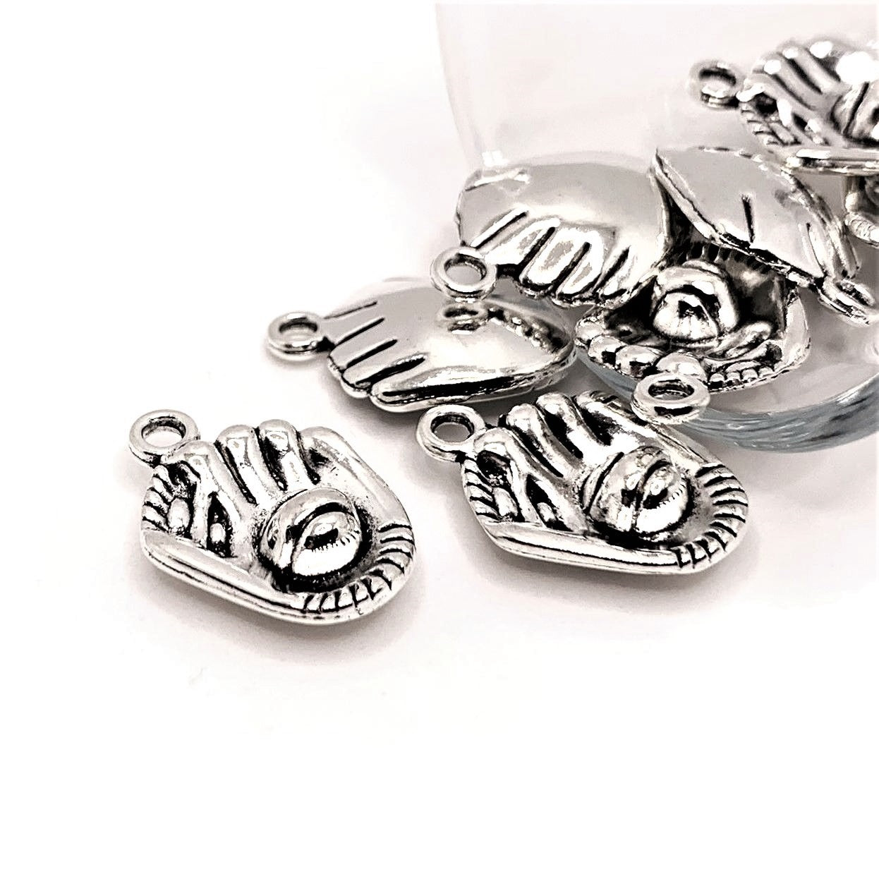 Silver Baseball Mitt Sports Glove Charms, 21x15mm