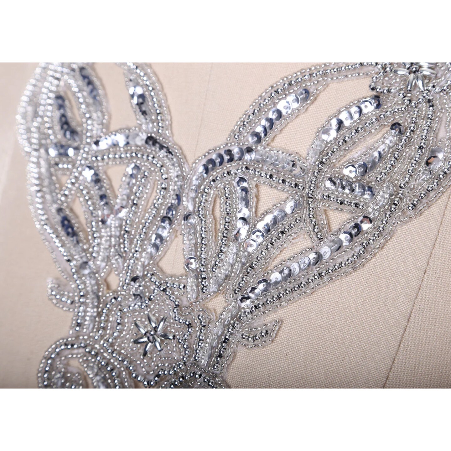 Silver Beaded Sequin Collar Applique Patch Victorian Costume Neck Trim