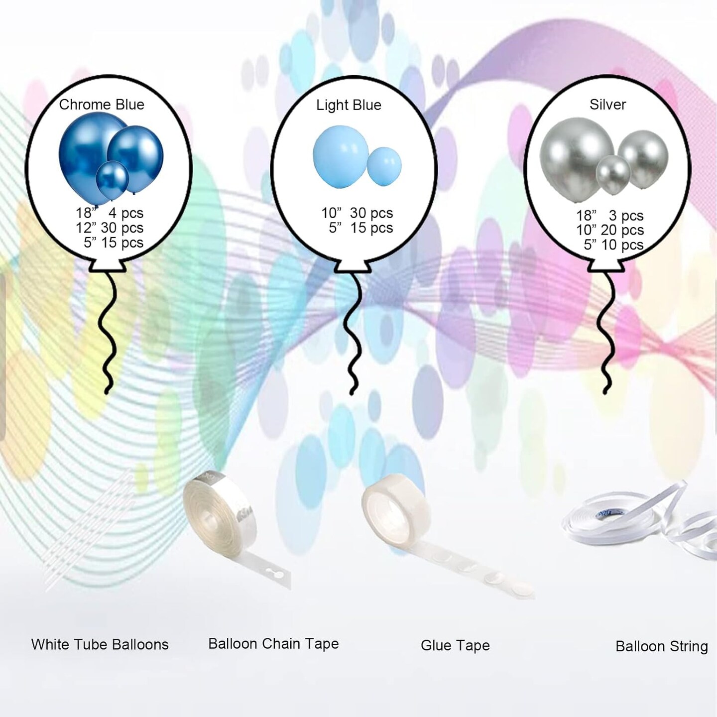 Silver Blue Balloon Garland 127 Pcs 18In 12In 10In 5In Confetti Latex Balloons Arch Kit for Baby Shower Bridal Shower Birthday Party Decors (Silver Blue)