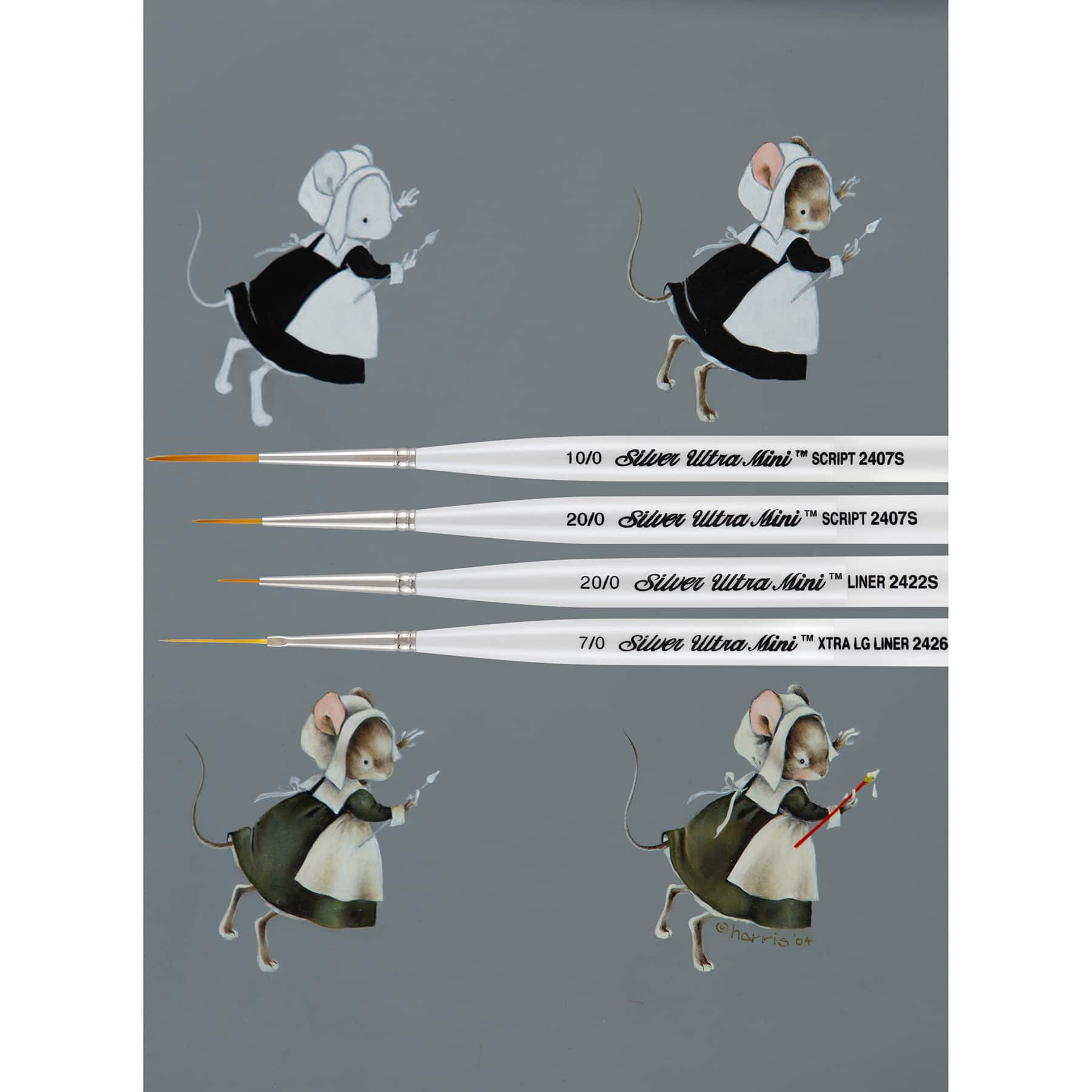 Silver Brush Limited Ultra Mini® White handles detail Brushes, Set of 4