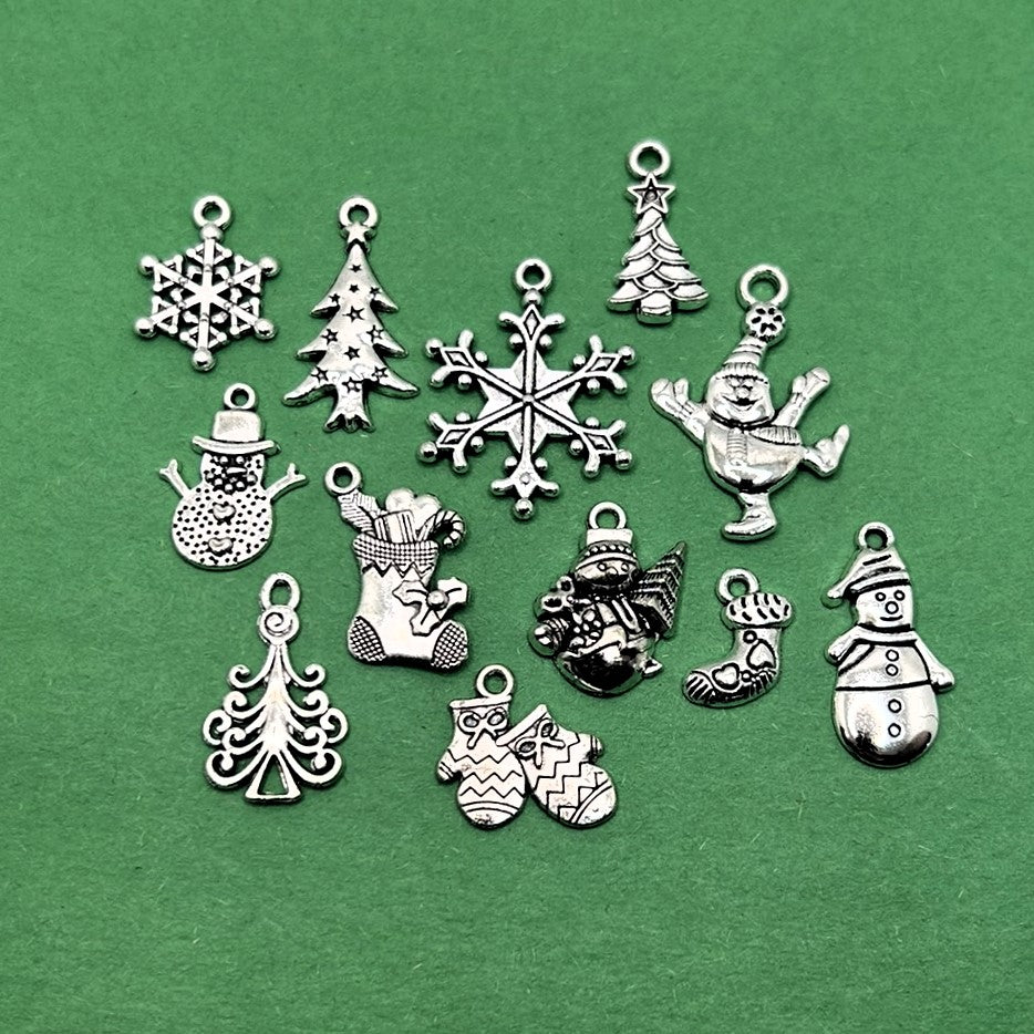 Silver Christmas Mix Charms, 120 pieces - 12 styles