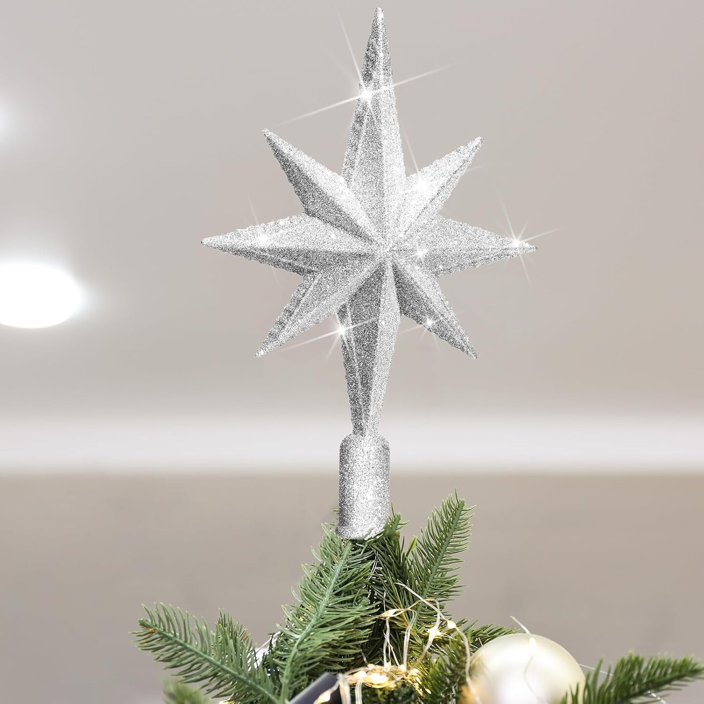 Silver Christmas Star Tree Topper Bethlehem Glitter Star Tree Topper Decorative