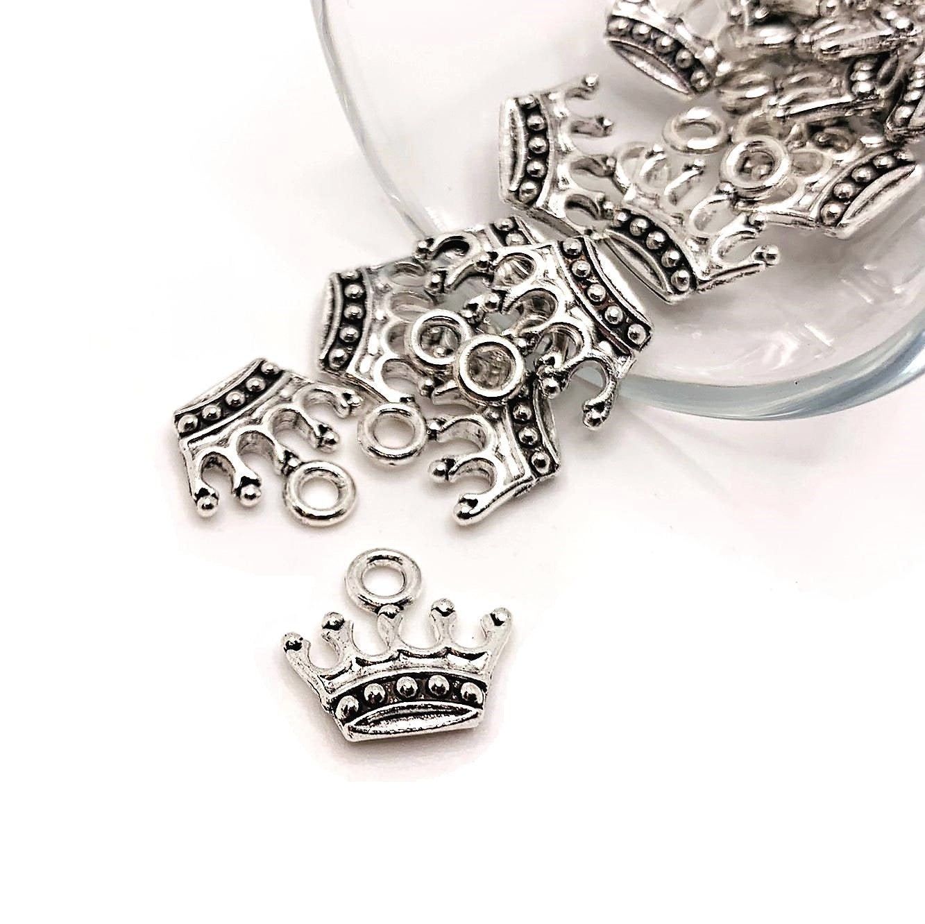 Silver Crown Charms, 13x14mm