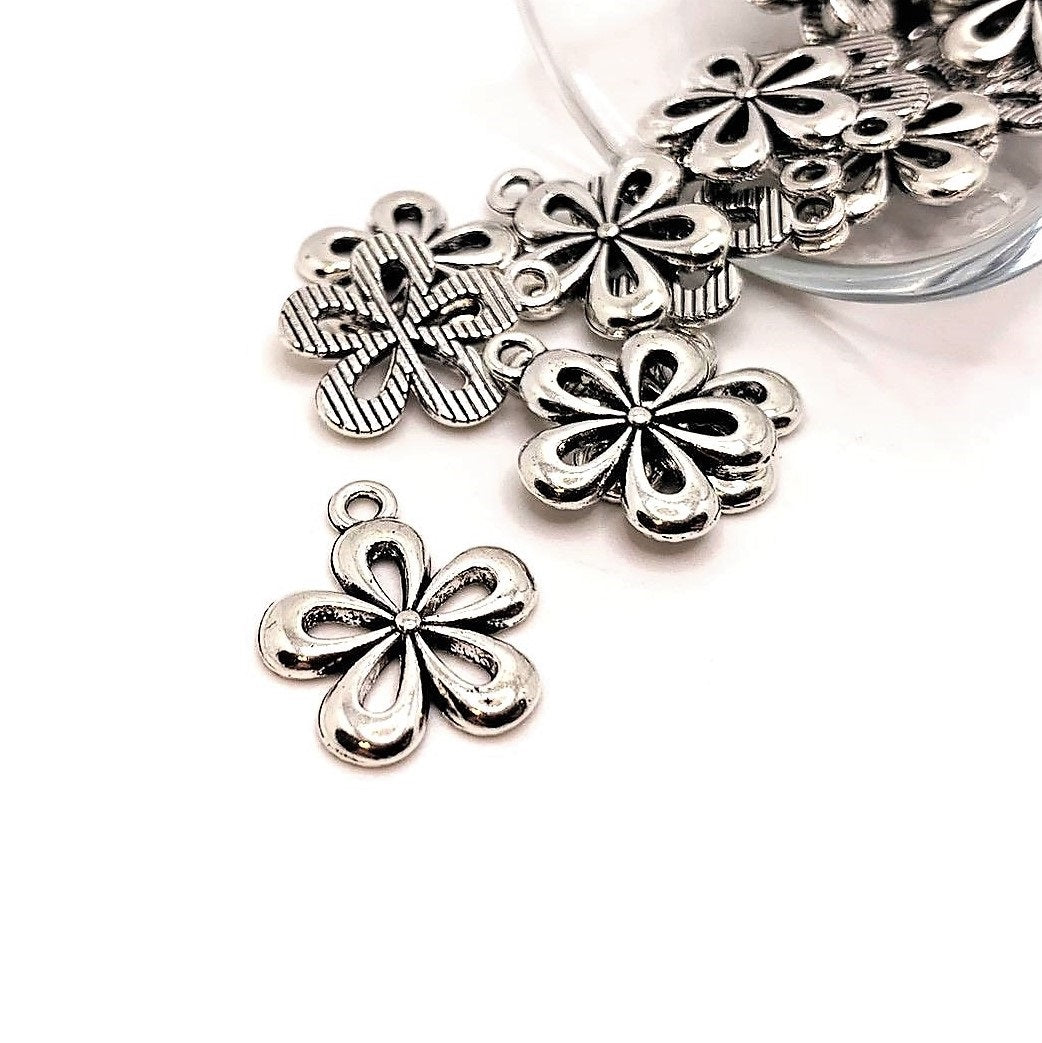 Silver Daisy Flower Charms, 18x15mm