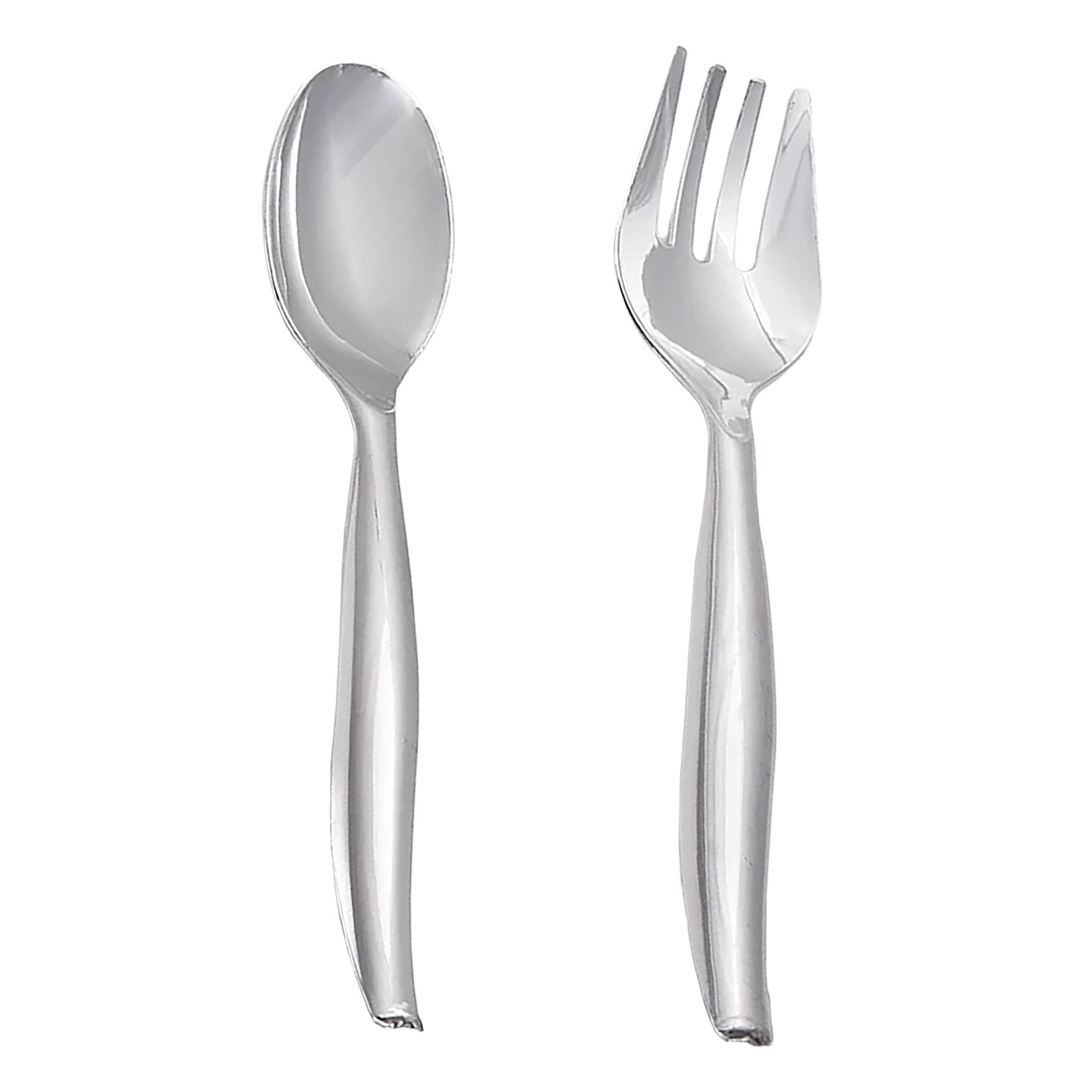 Silver Disposable Plastic Serving Flatware Set (150 Pairs)