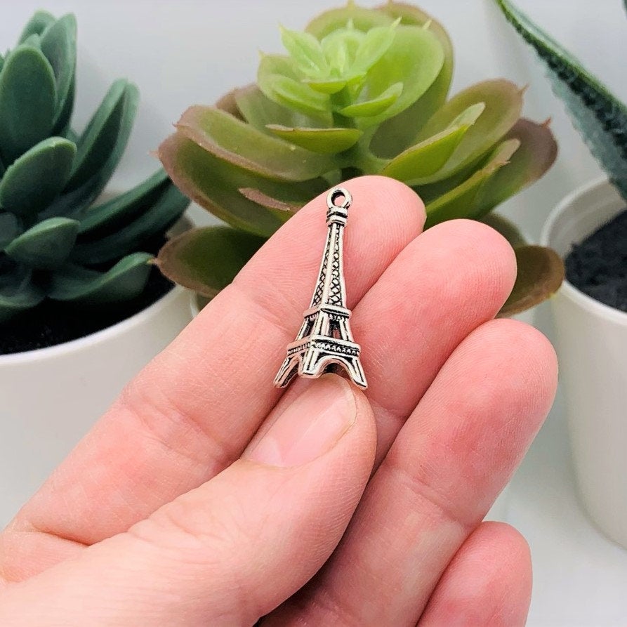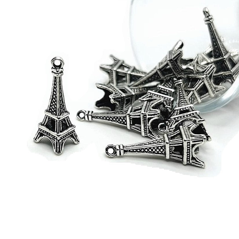 Silver Eiffel Tower 3D Charms, 27x10mm