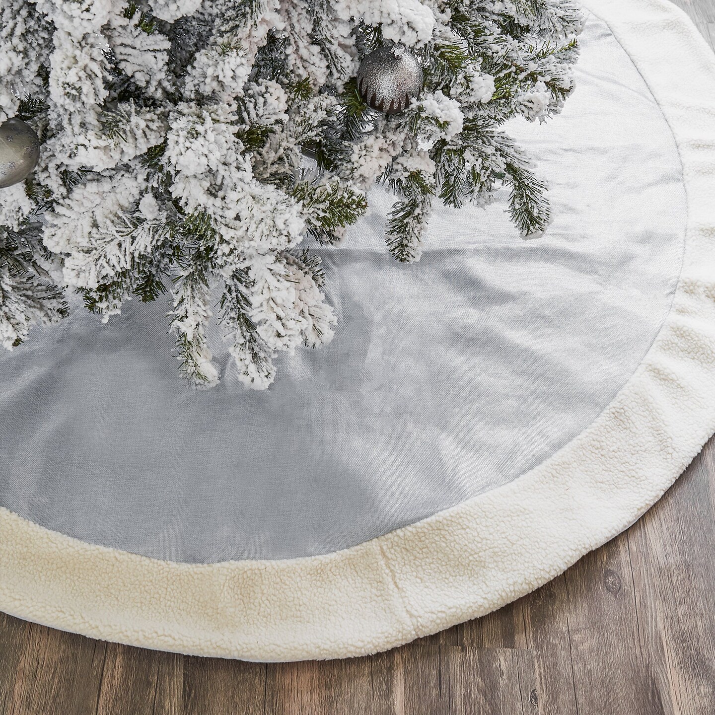 Silver Faux Burlap with Sherpa Fur Tree Skirt - 66"