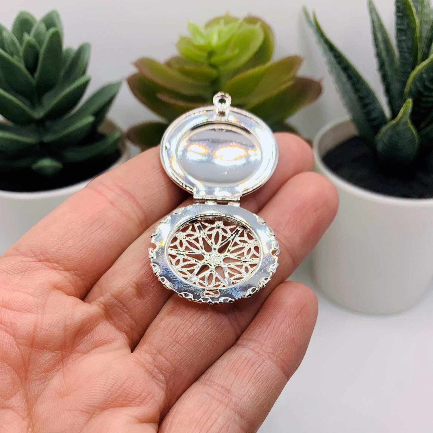 Silver Filigree Aromatherapy Essential Oil Diffuser Lockets