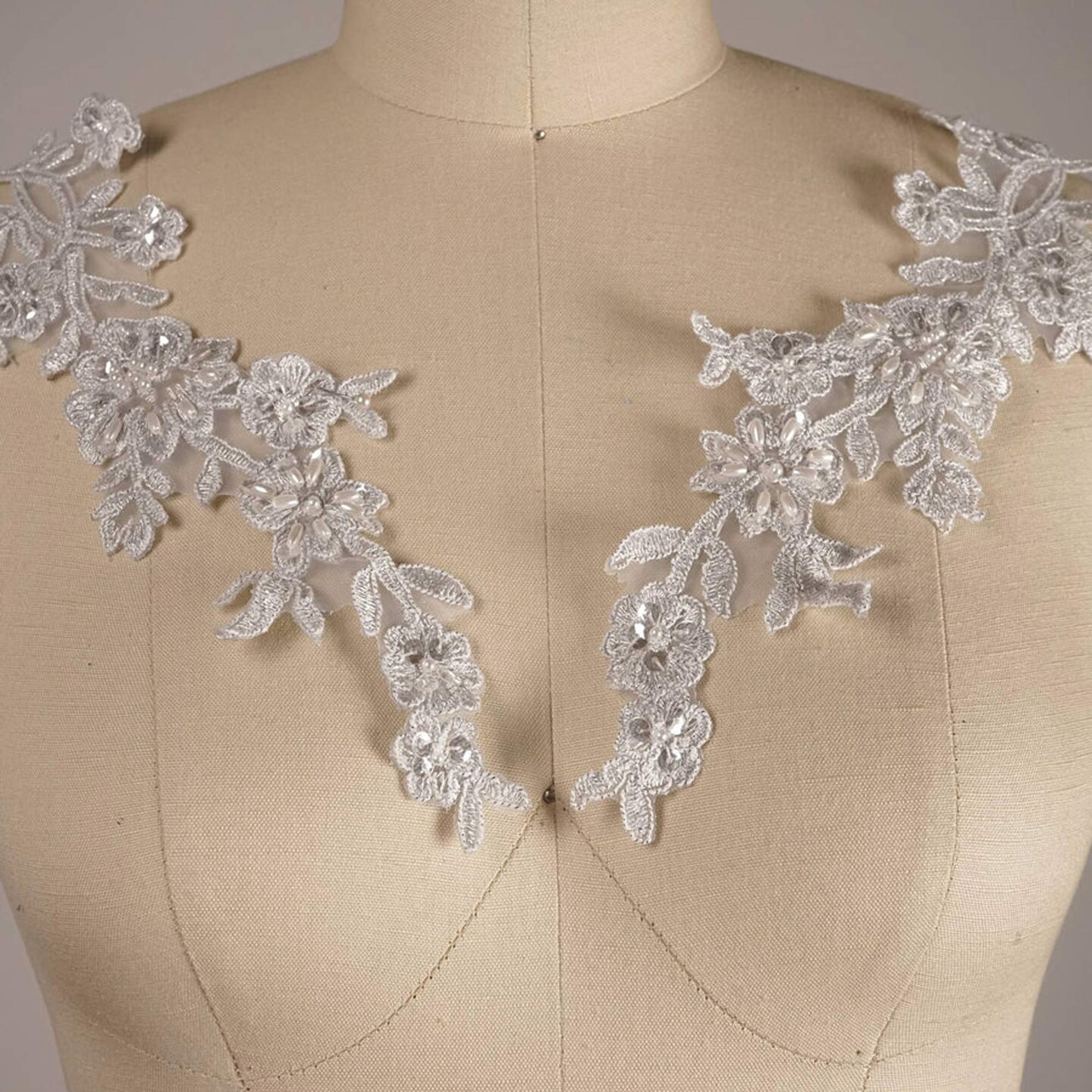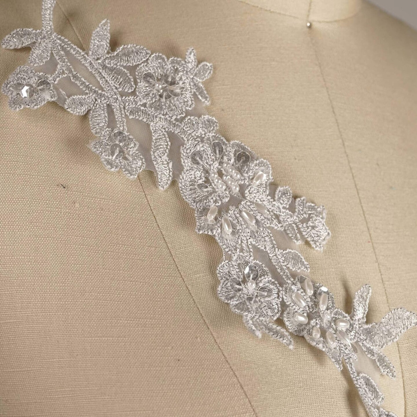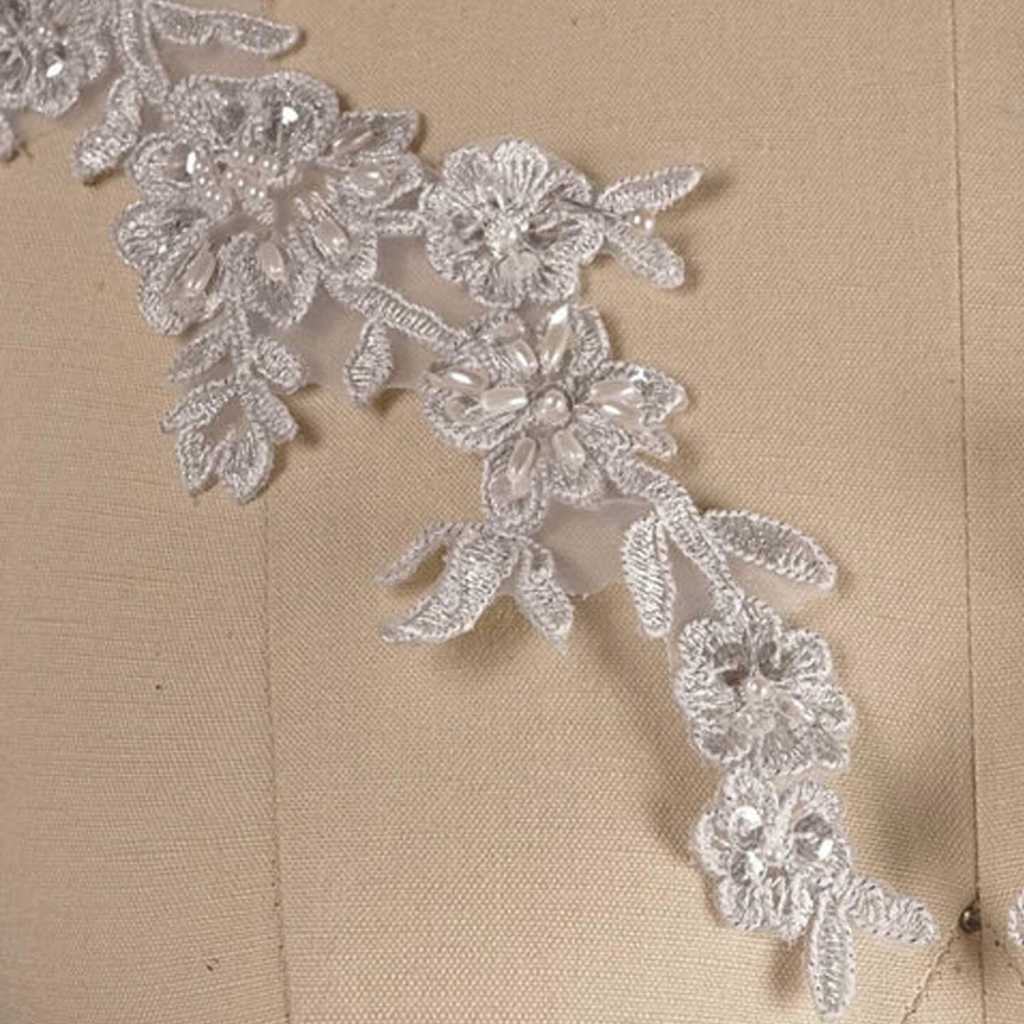 Silver Flower Branch Lace Applique 10 Inch Pearl Sequined Alencon Set