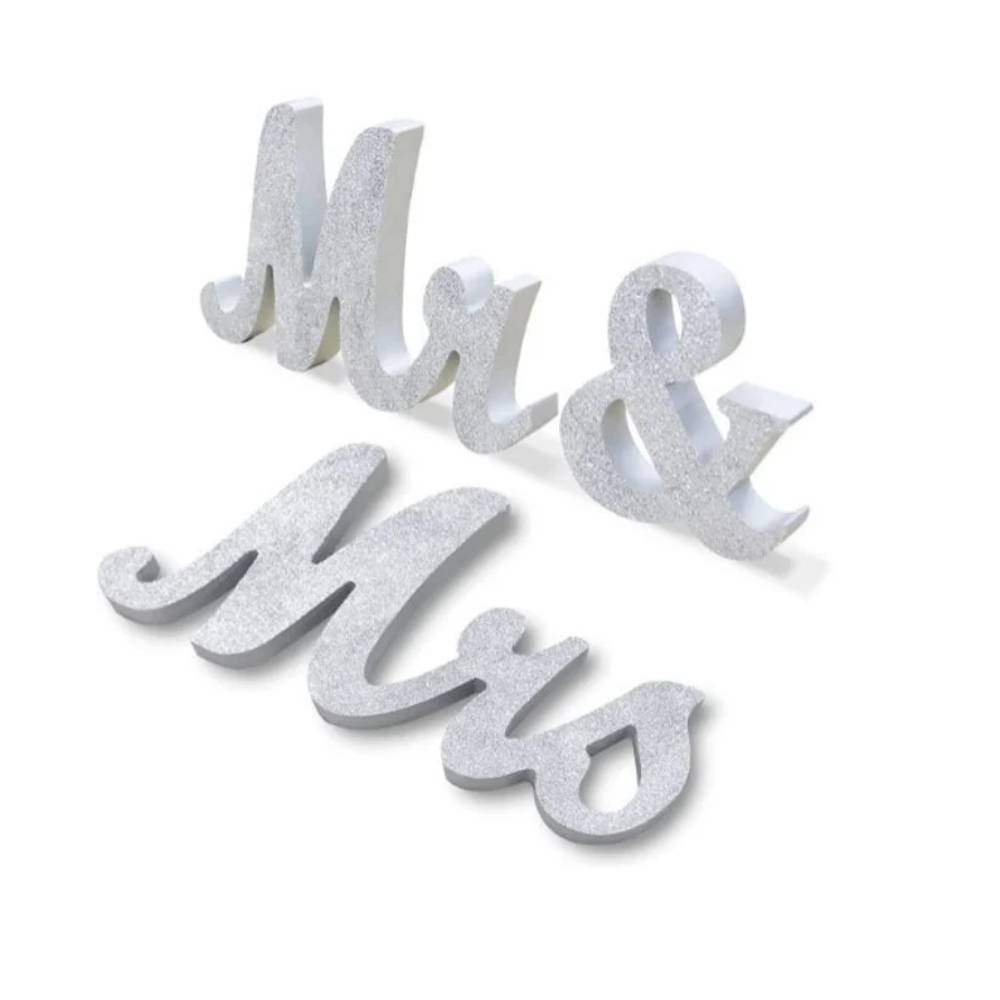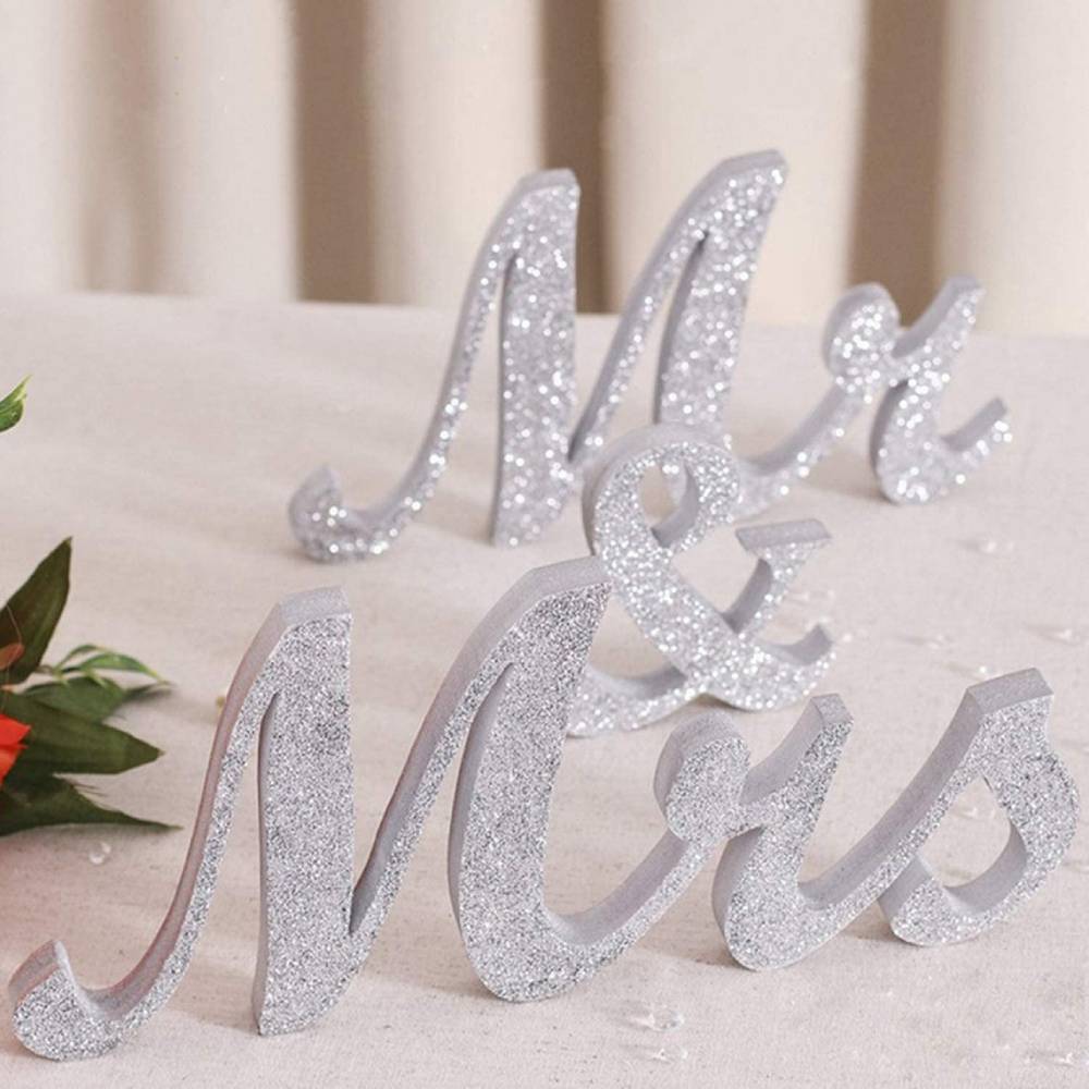 Silver Glitter Mr and Mrs Sign Wooden Mr and Mrs Sign Letters Wedding Sweetheart