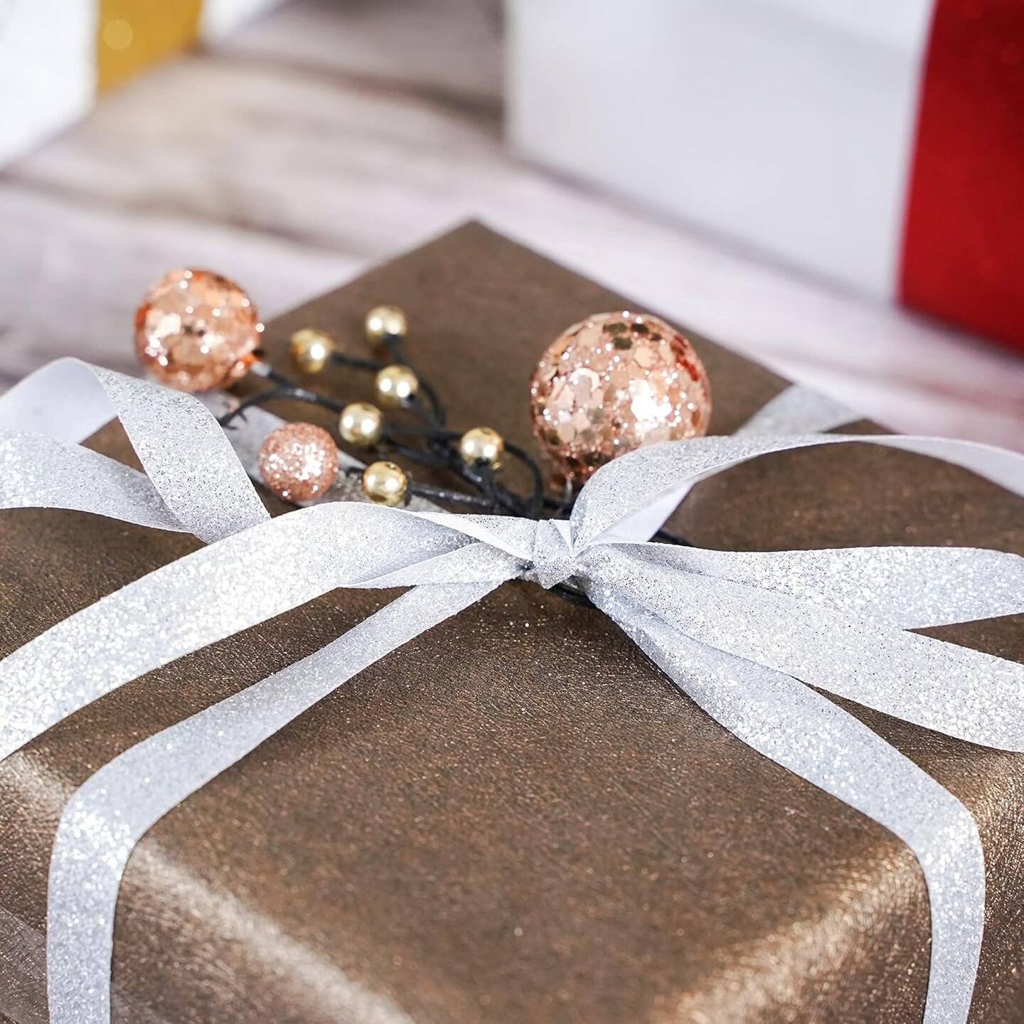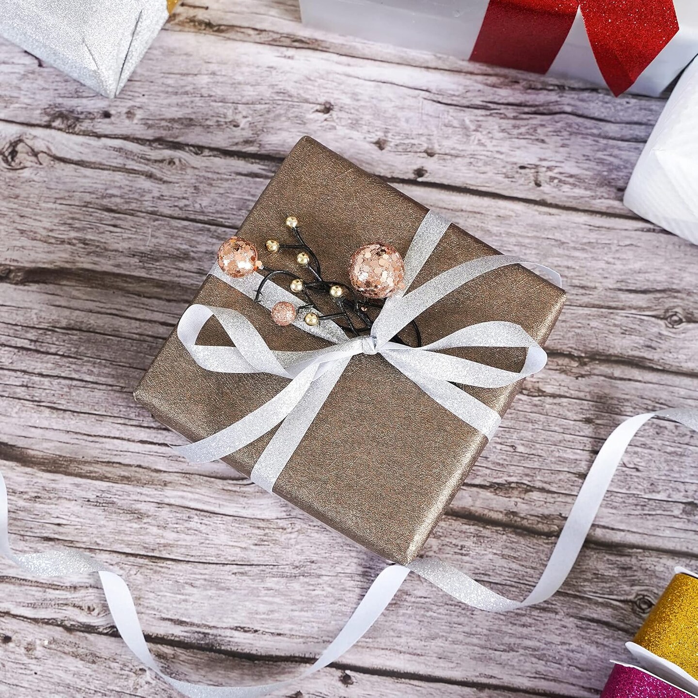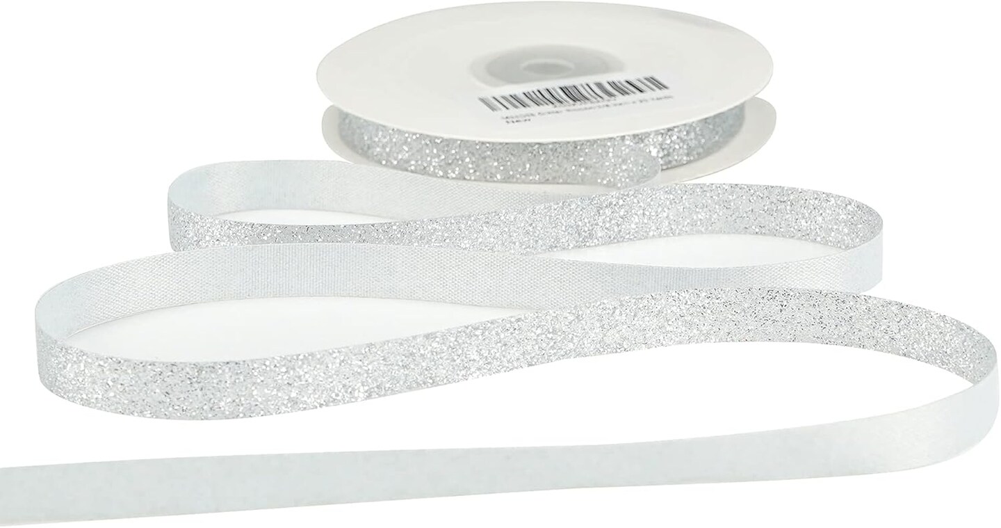 Silver Glitter Ribbon - 3/8 inch x 25 Yards Sparkly Ribbon for Gifts, Wrapping, Cards, Crafts, Wreaths, Hampers, Christmas Decor, Wedding, Party, Home Decoration