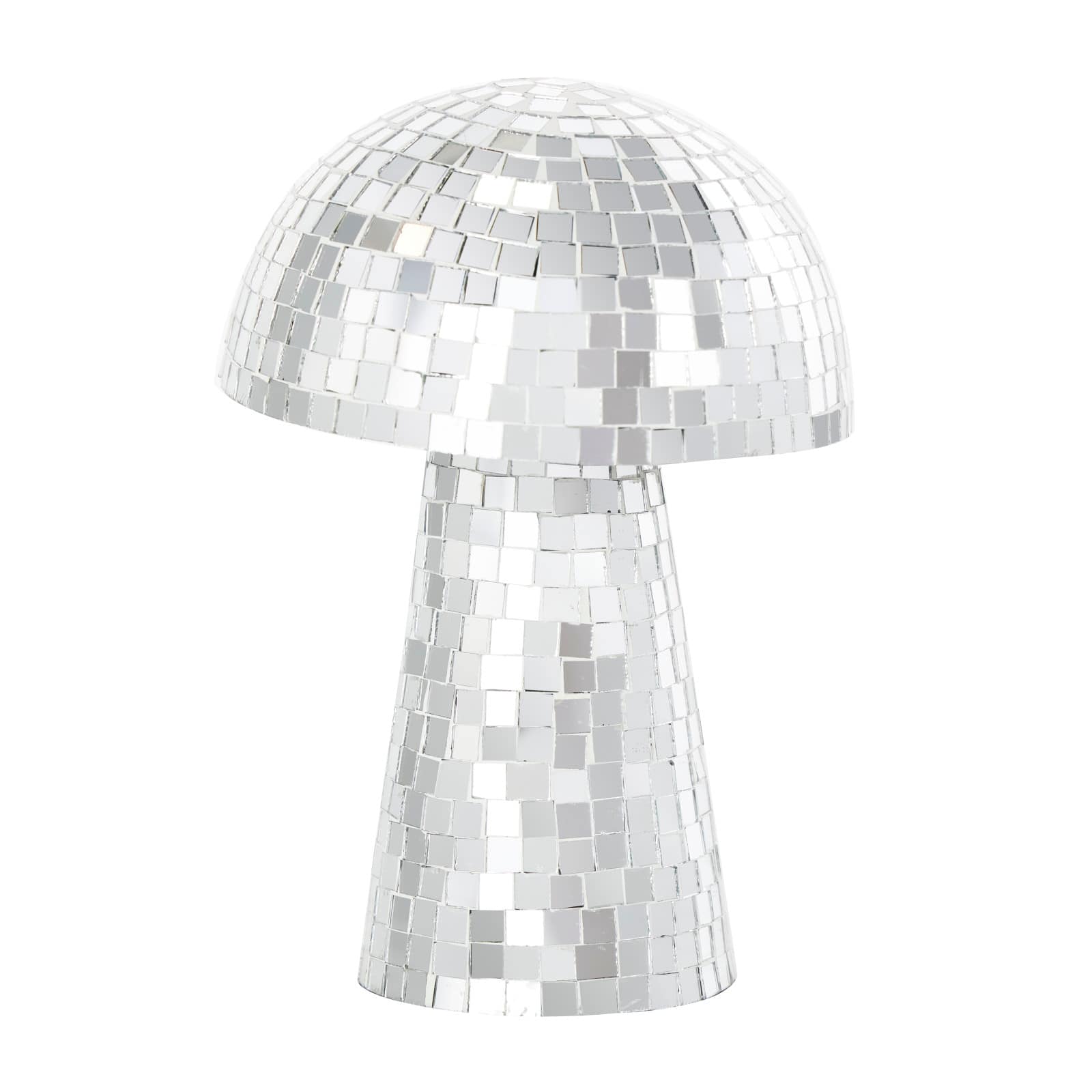 Silver Handmade Glass Mosaic Mushroom Mirror Sculpture Set