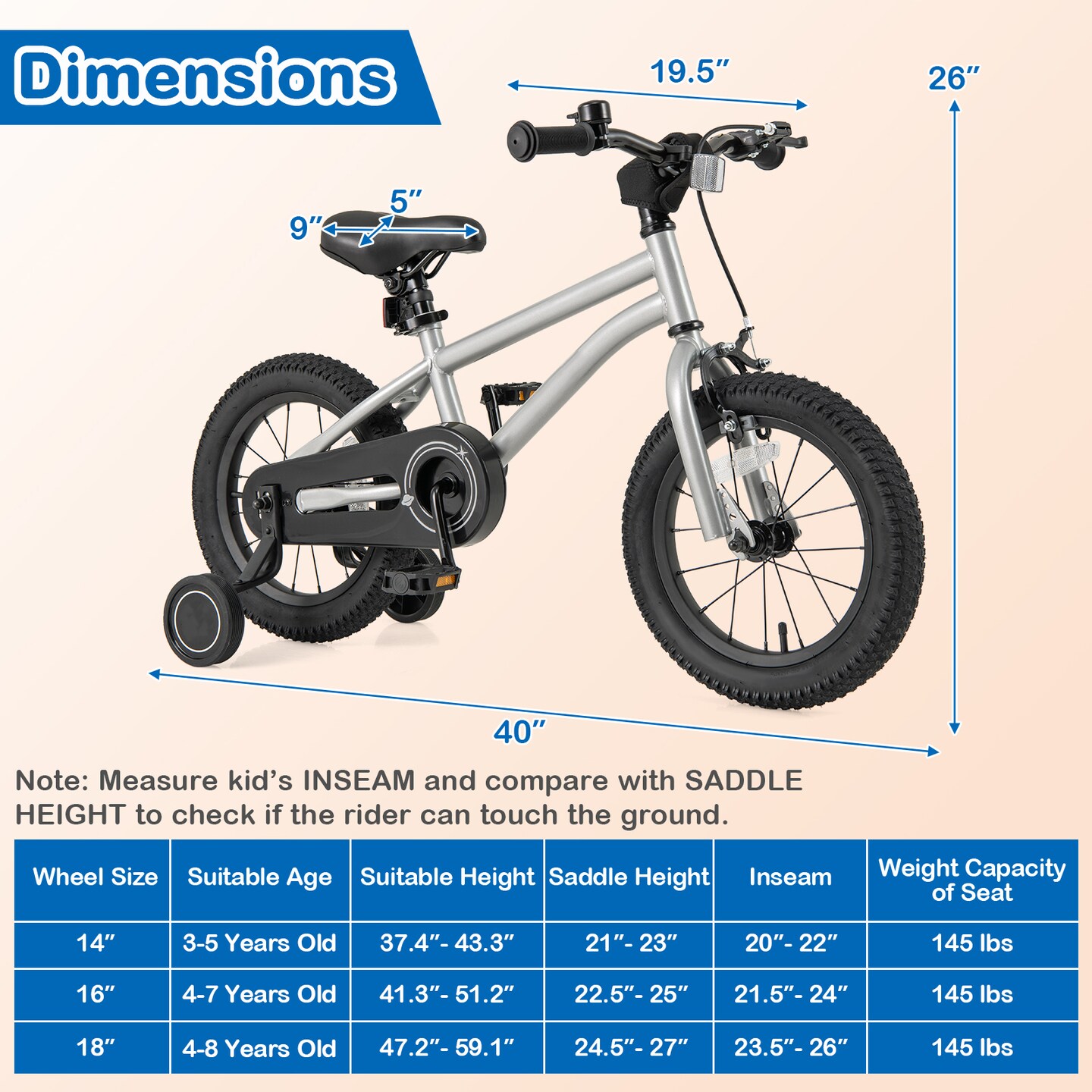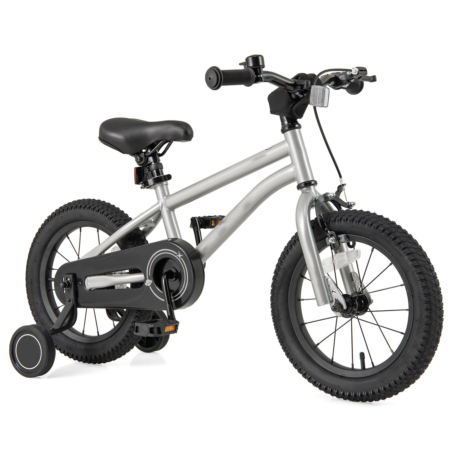 Silver High Carbon Steel Kids Bike with Dual Brakes and Reflectors