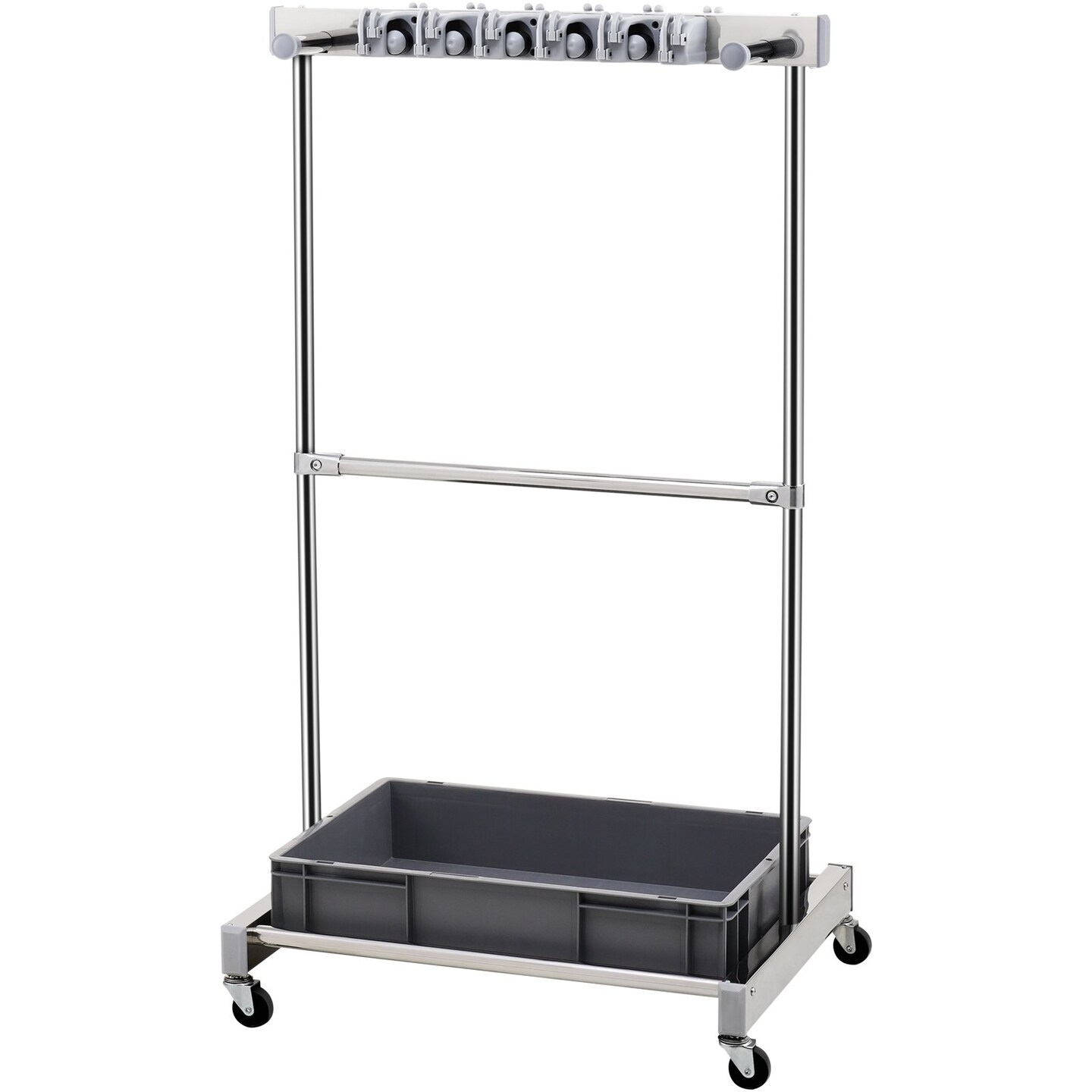 Silver Lawn and Garden Tool Organizer with 10 Slots and Foldable Hooks and Mobile Swivel Base
