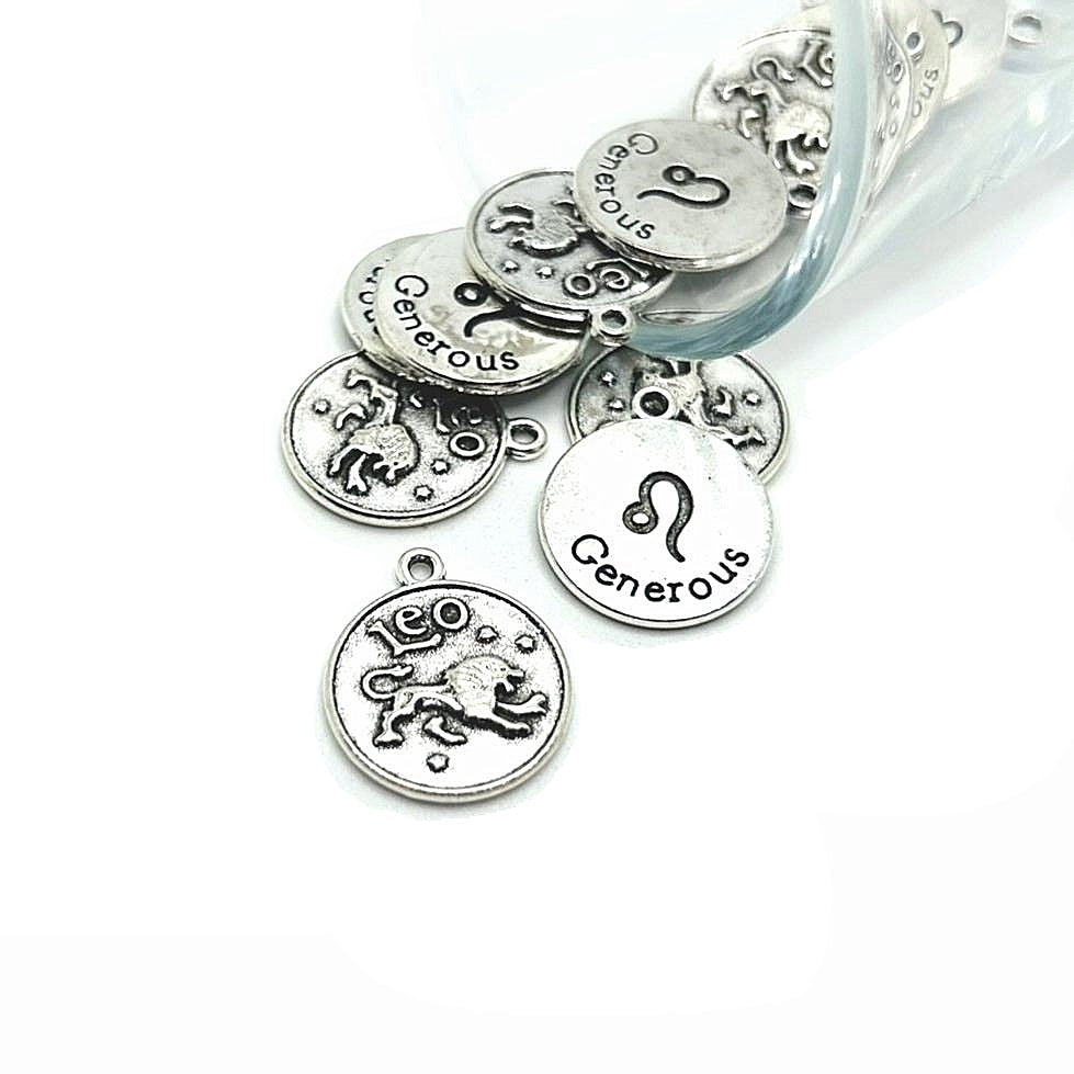Silver Leo Zodiac/Astrology Coin Charms, 17x20mm