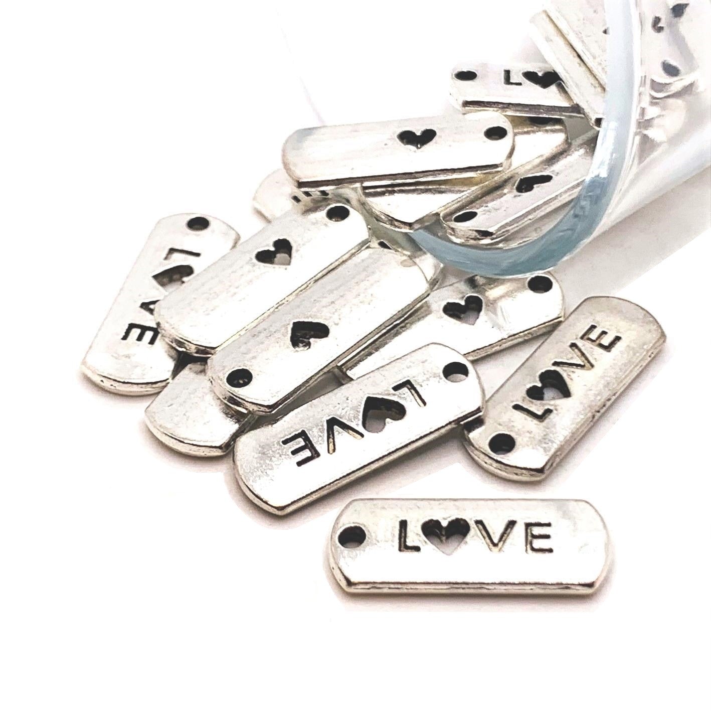 Silver Love Word Bar Tag Charms, 8x21mm
