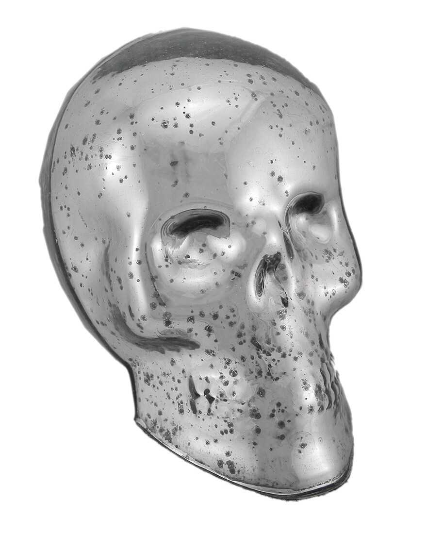 Silver Mercury Glass Skull Statue