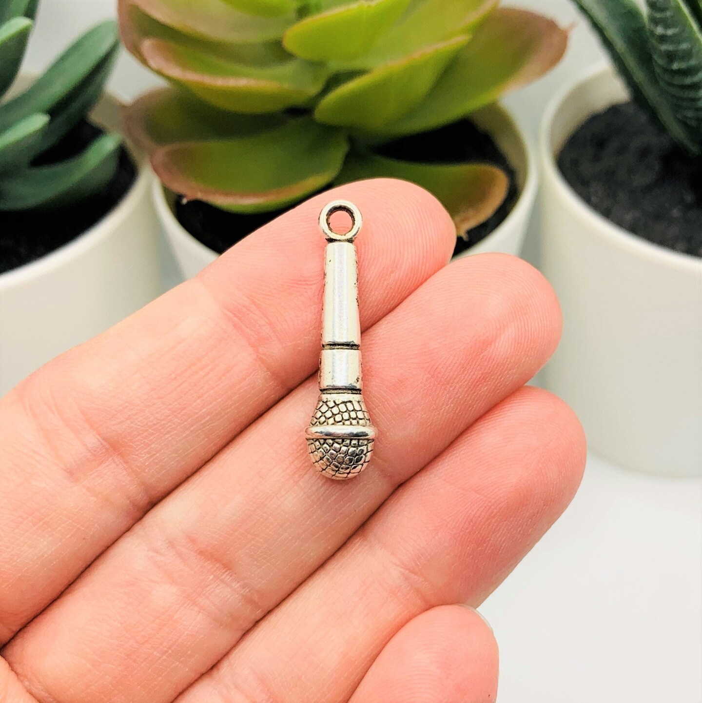 Silver Microphone Music 3D Charms, 25x8mm
