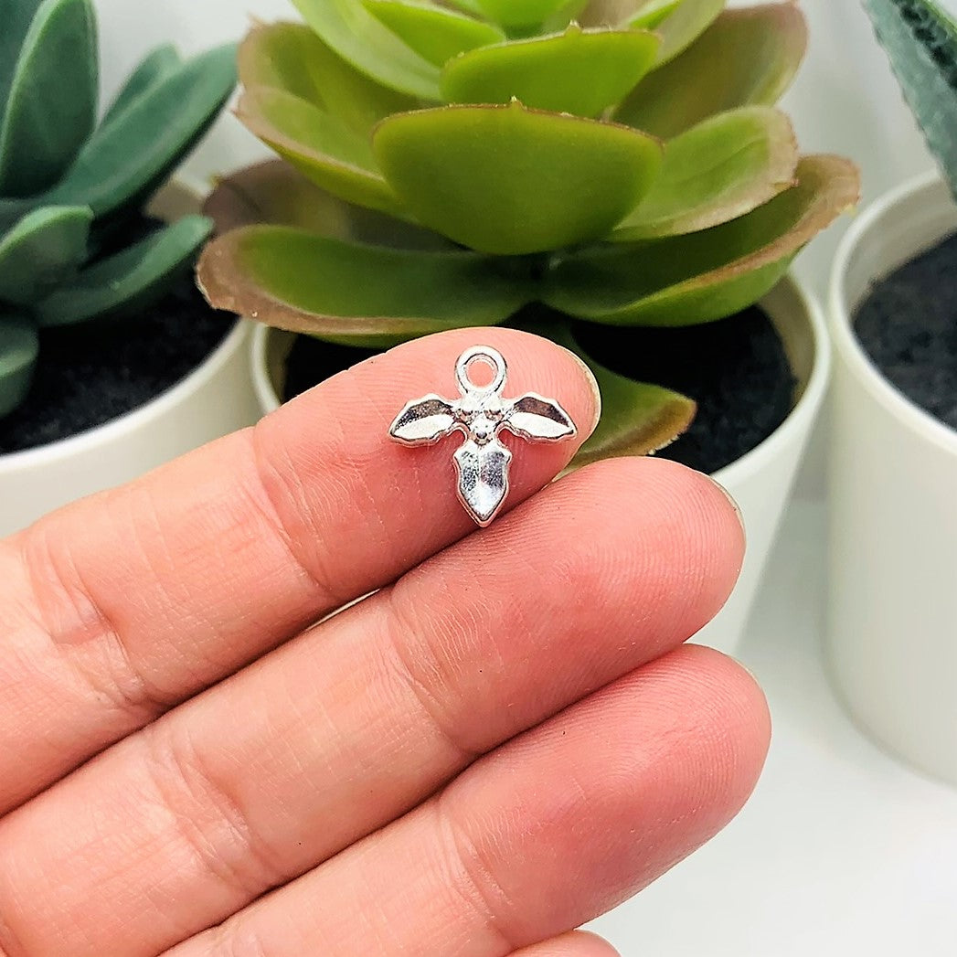 Silver Mistletoe Holly Christmas Charms, 12x14mm