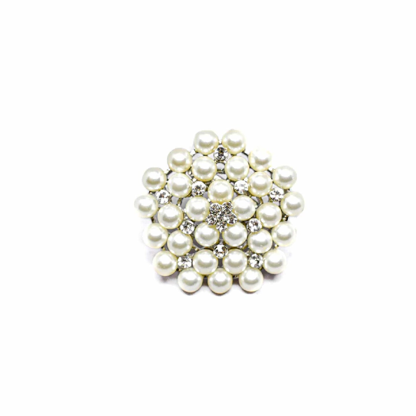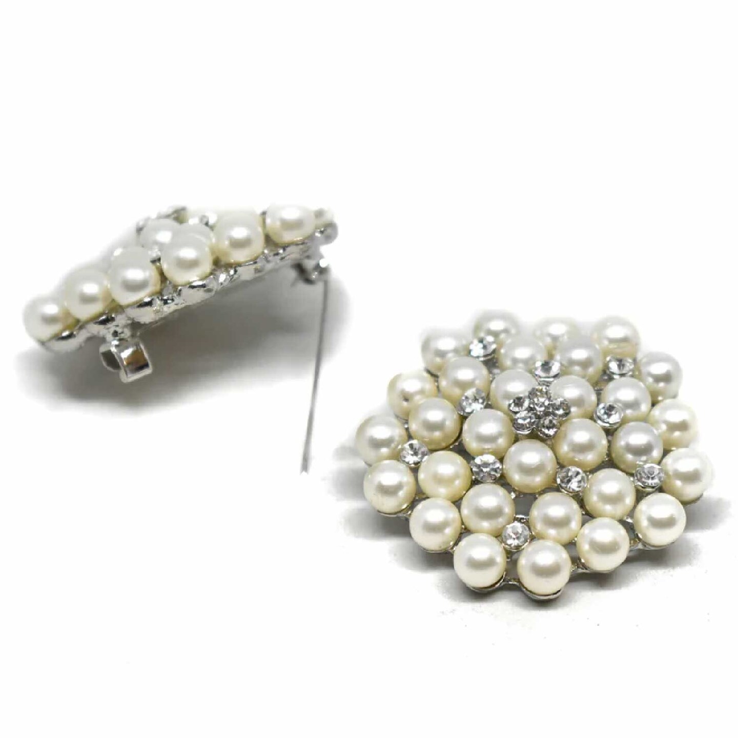 Silver Pearl Brooch Pin With Crystal Flowers For Bridal DIY Crafts 1 3/4 Inch