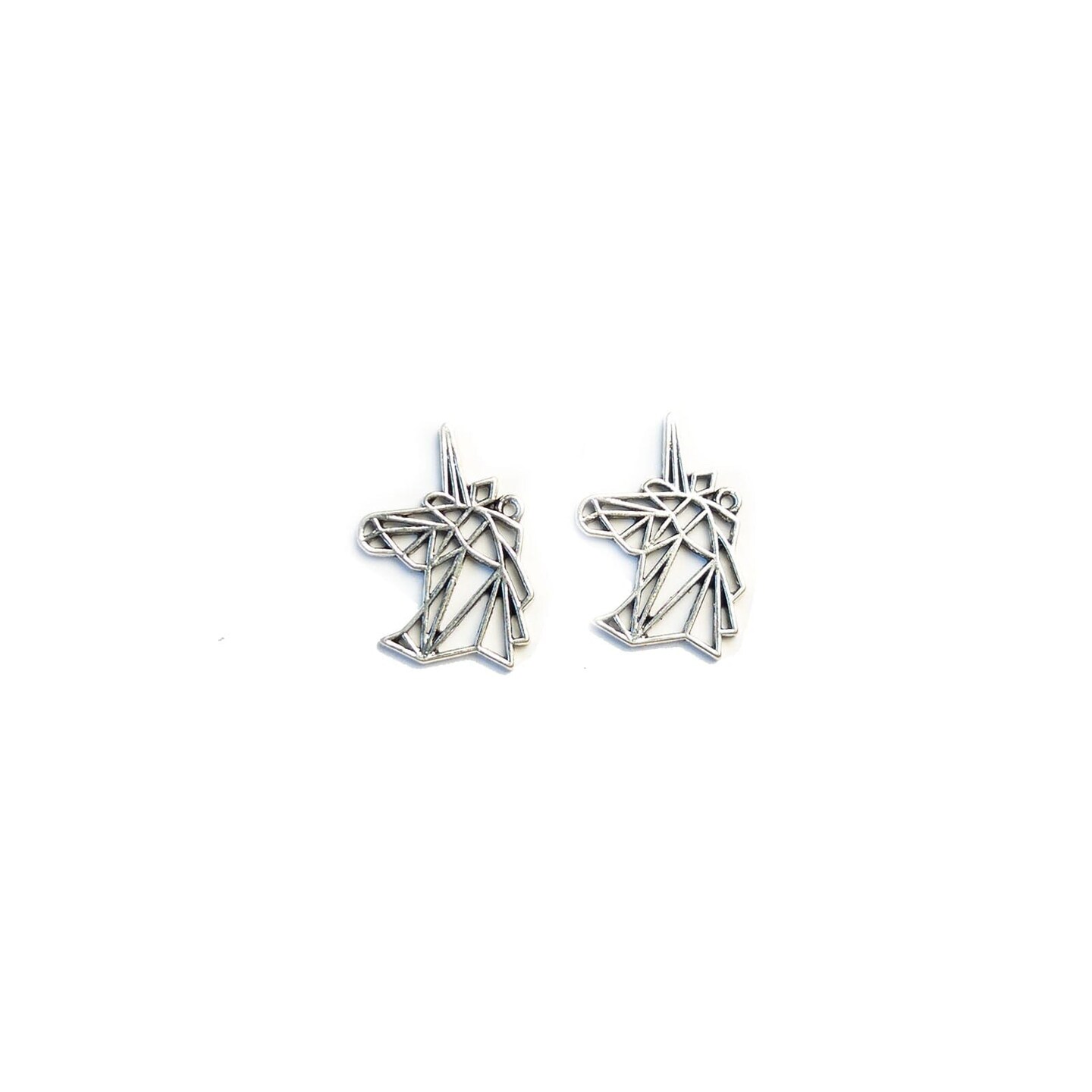 Silver Plated Origami Unicorn 20x28mm Charms - 2pcs