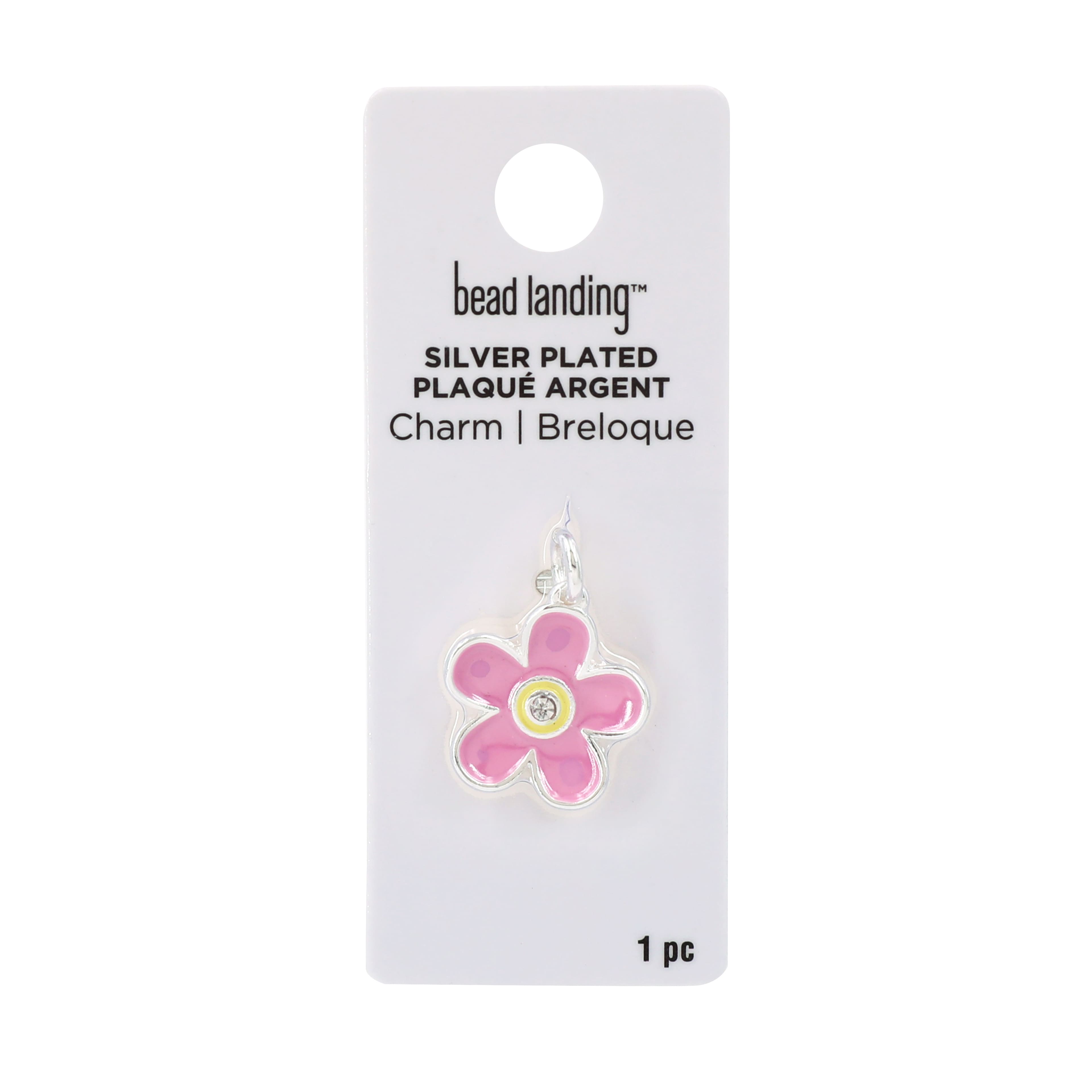 Silver Plated Pink Flower Charm by Bead Landing™
