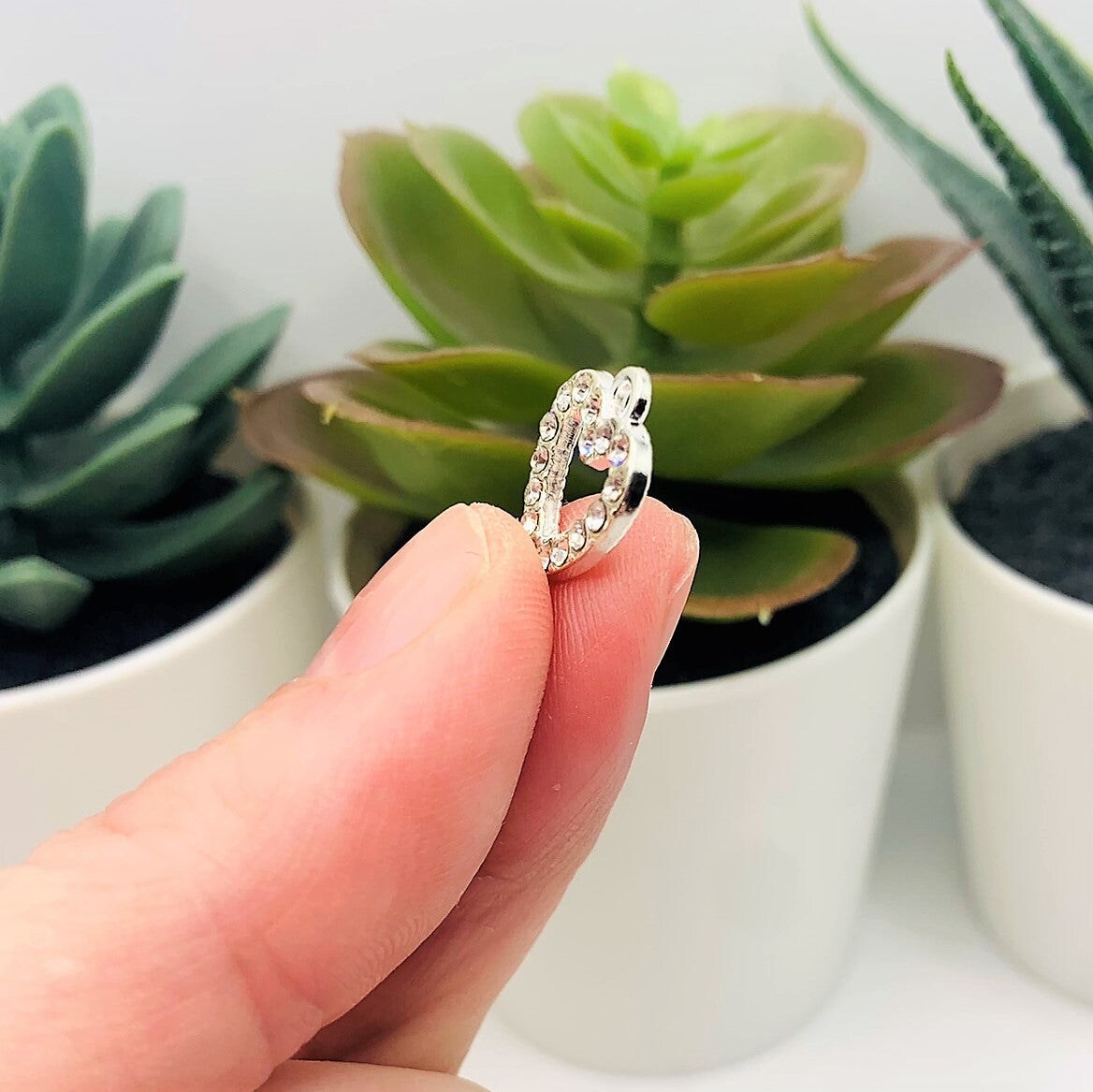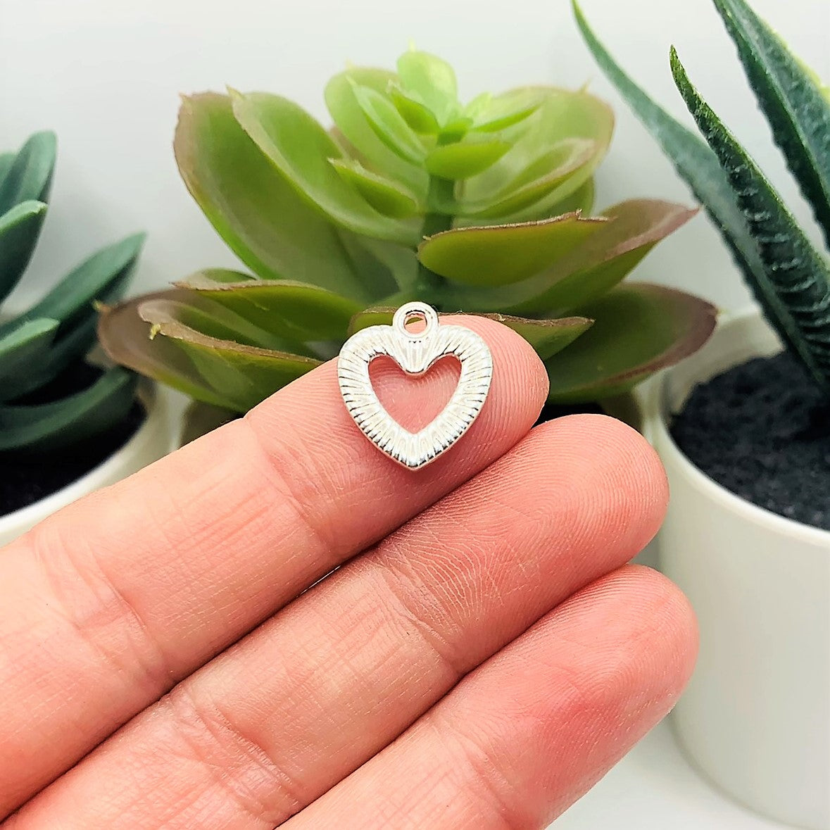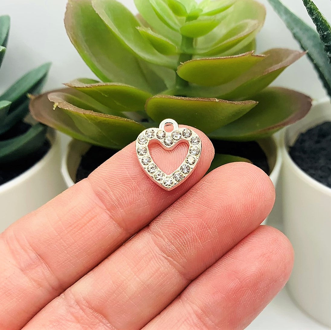 Silver Plated Rhinestone Heart Charms, 14x13mm