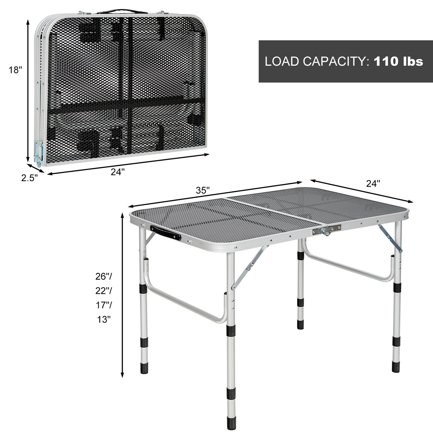 Silver Portable Aluminum BBQ Grill Table with Iron Mesh Surface
