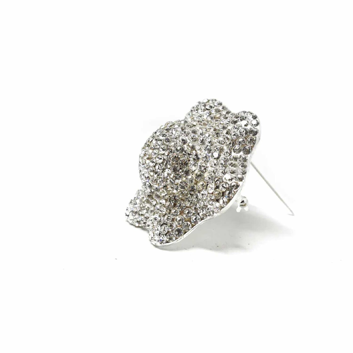 Silver Rhinestone Flower Brooch Pin For Outfits Gifts DIY Crafts 2 1/2 Inch