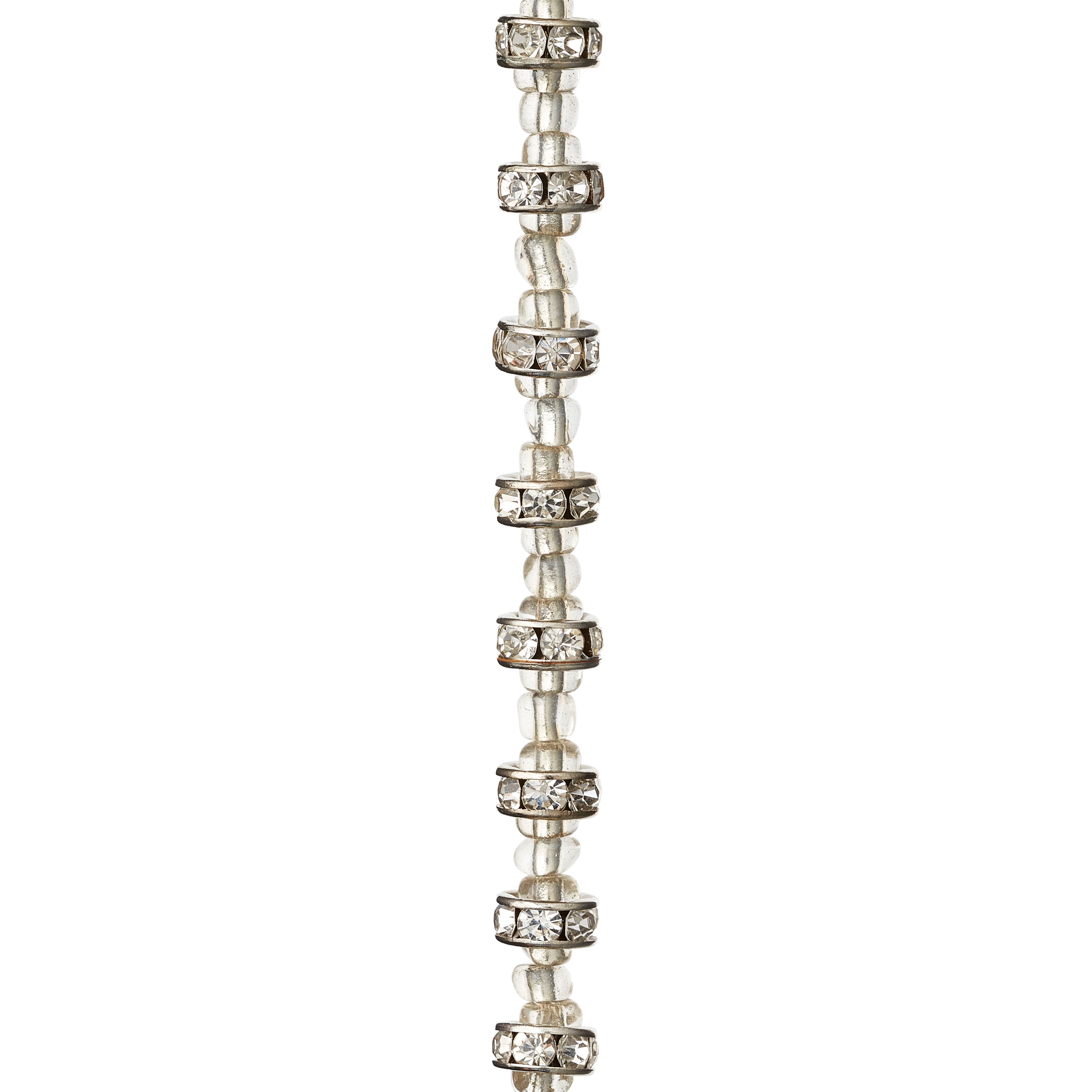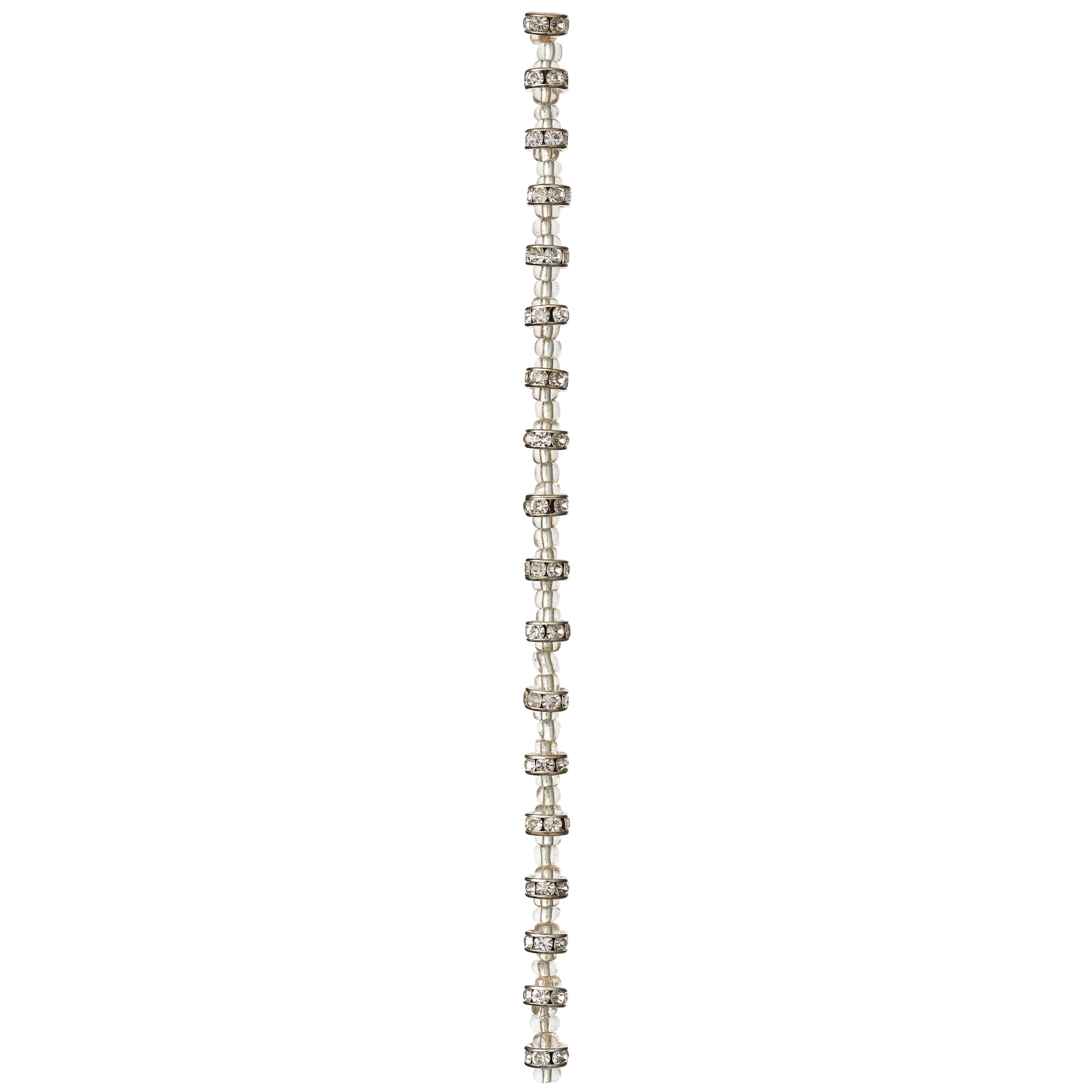 Silver Rhinestone Studded Rondel Beads, 7mm by Bead Landing™