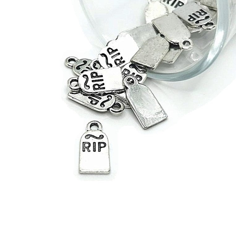 Silver RIP Tombstone Halloween Charms, 16x8mm