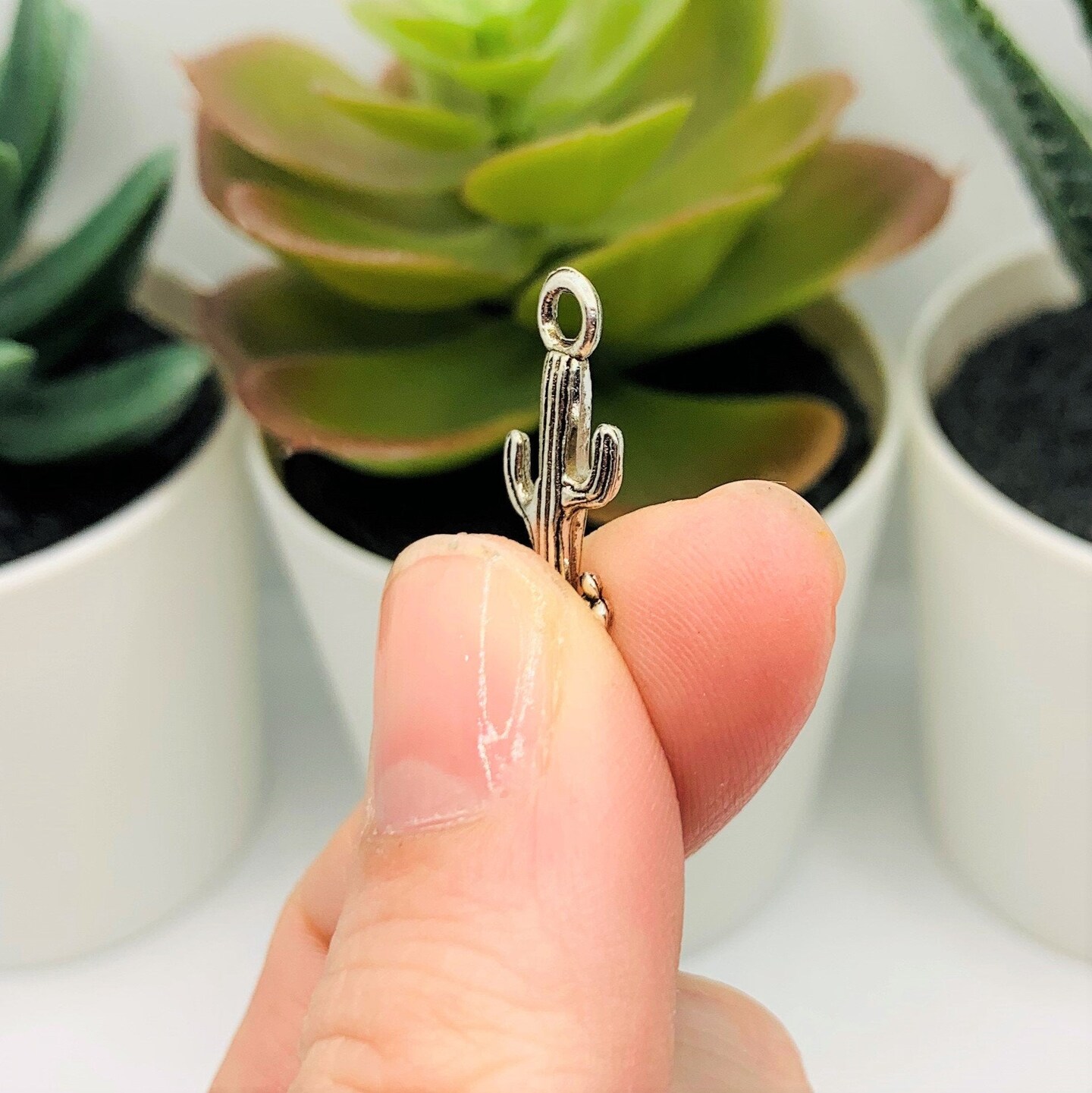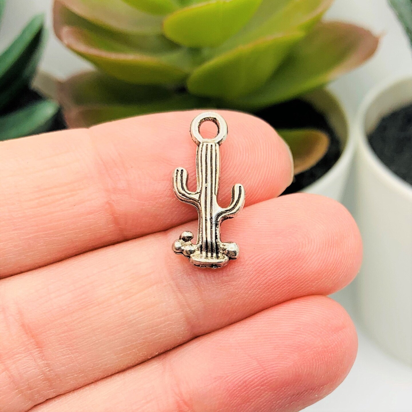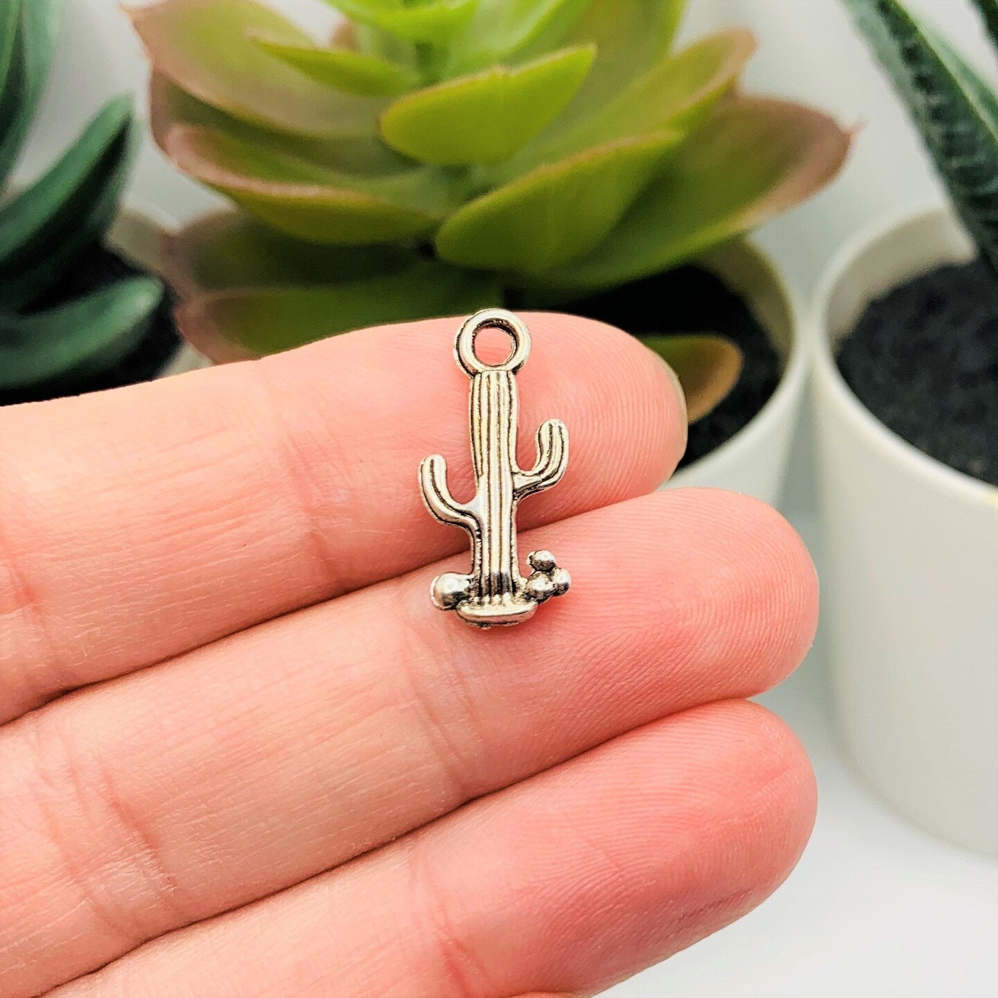 Silver Saguaro Cactus Charms, 29x9mm