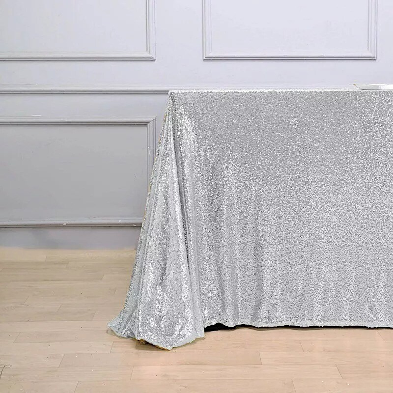SILVER Sequined 90x156" RECTANGLE TABLECLOTH Designer Wedding Party Catering