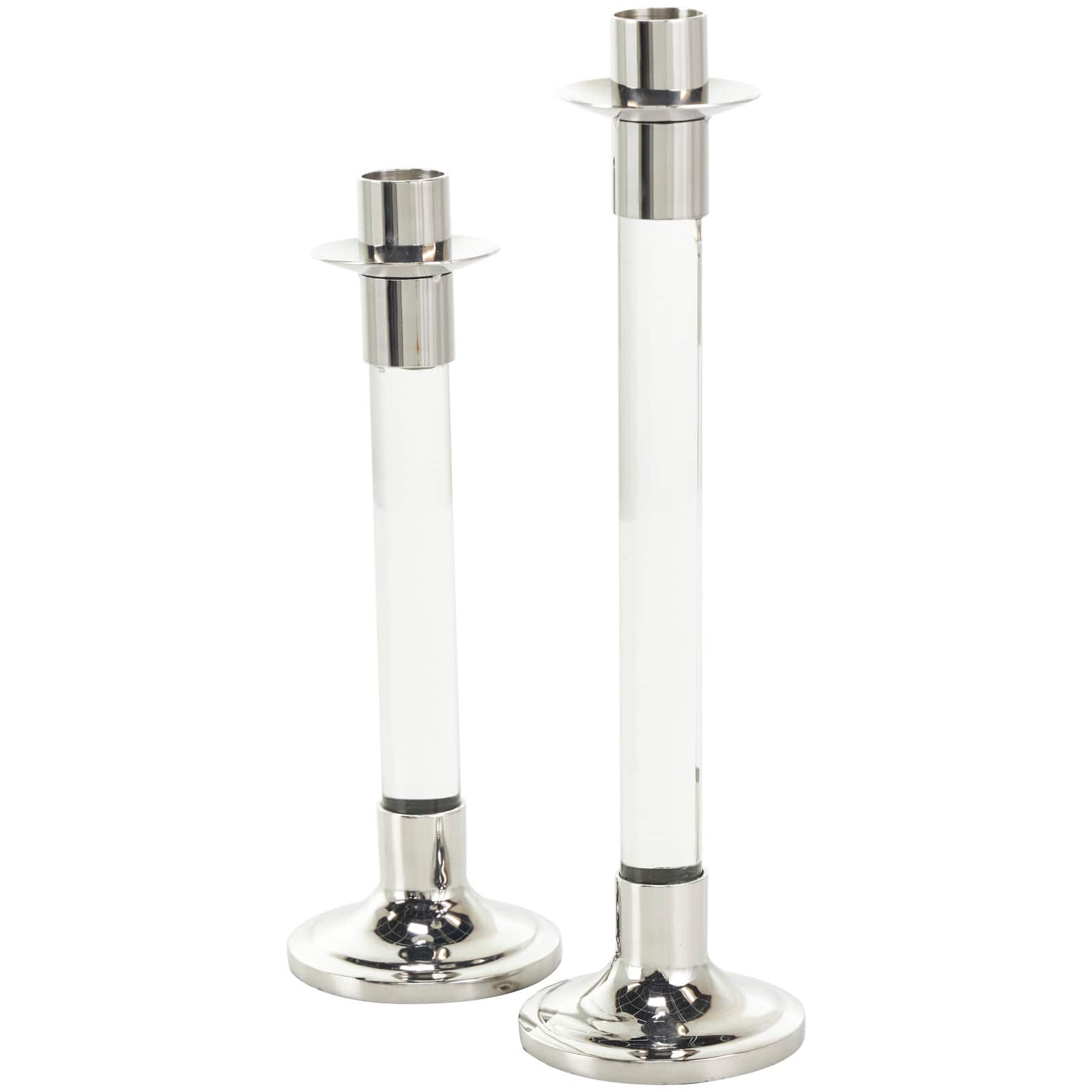 Silver Stainless Steel Candle Holder with Clear Glass Center Set