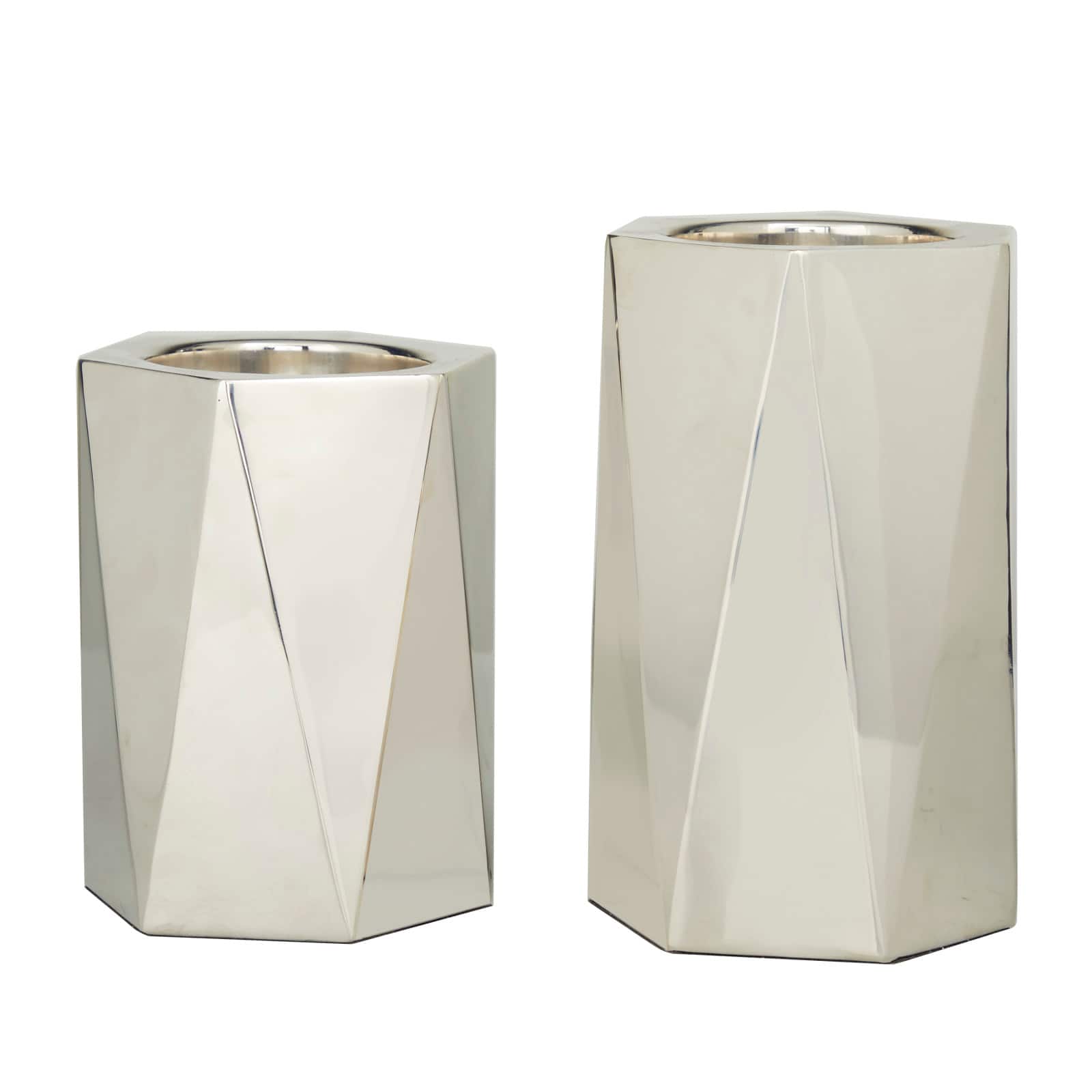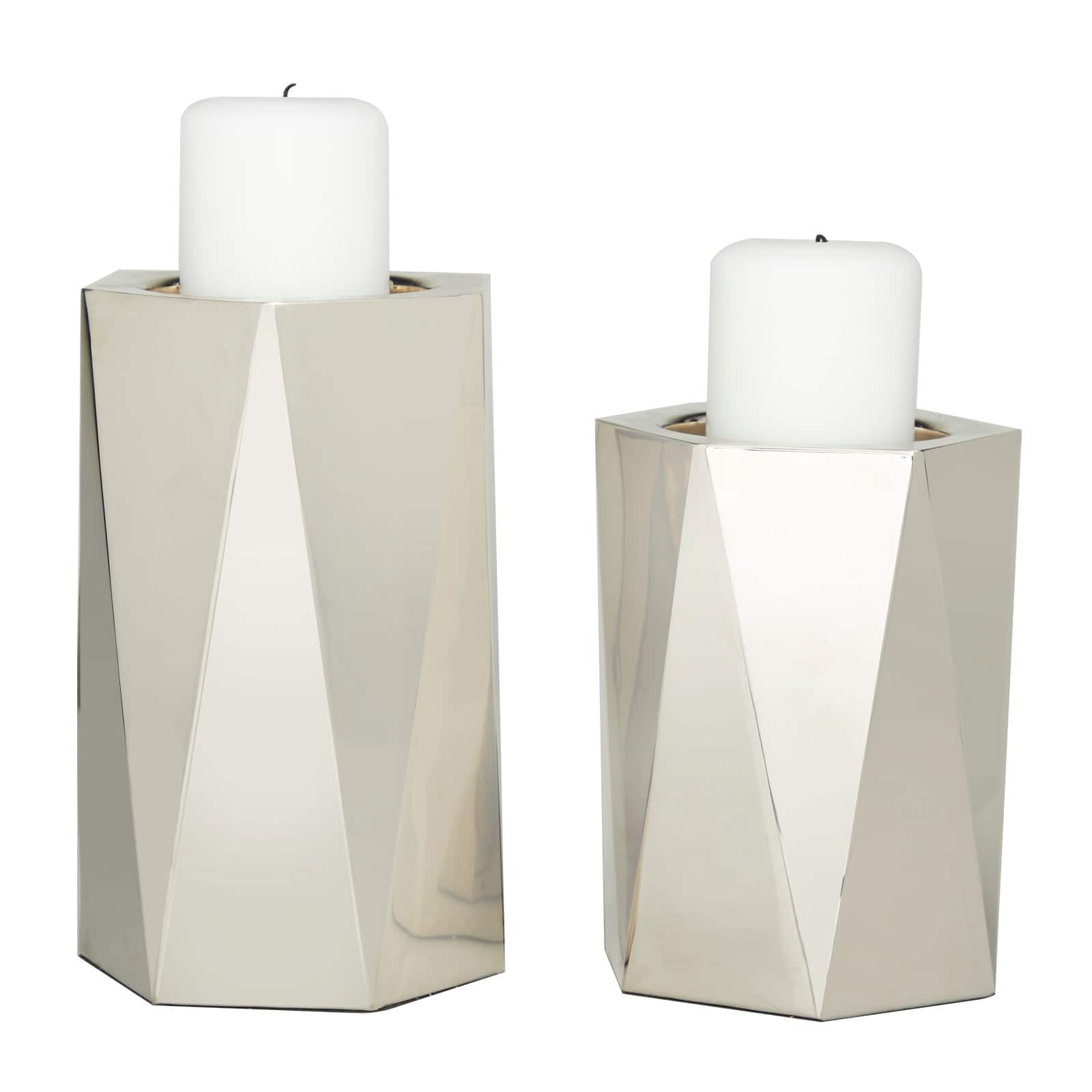 Silver Stainless Steel Glam Candle Holder, Set of 2" 10", 8"