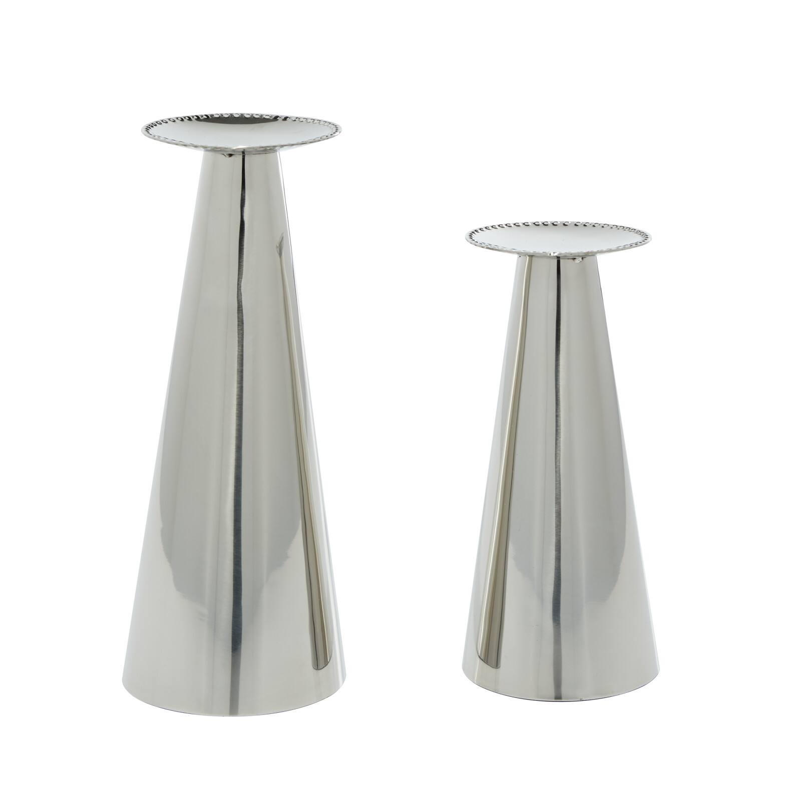 Silver Stainless Steel Glam Cone Candle Holder Set