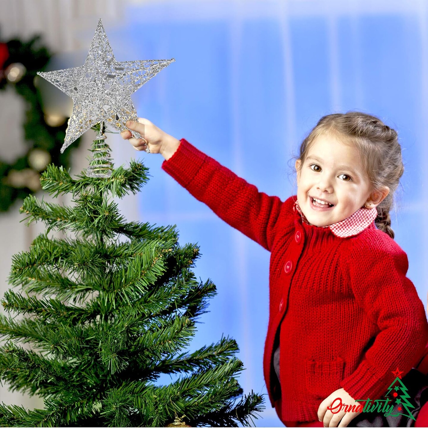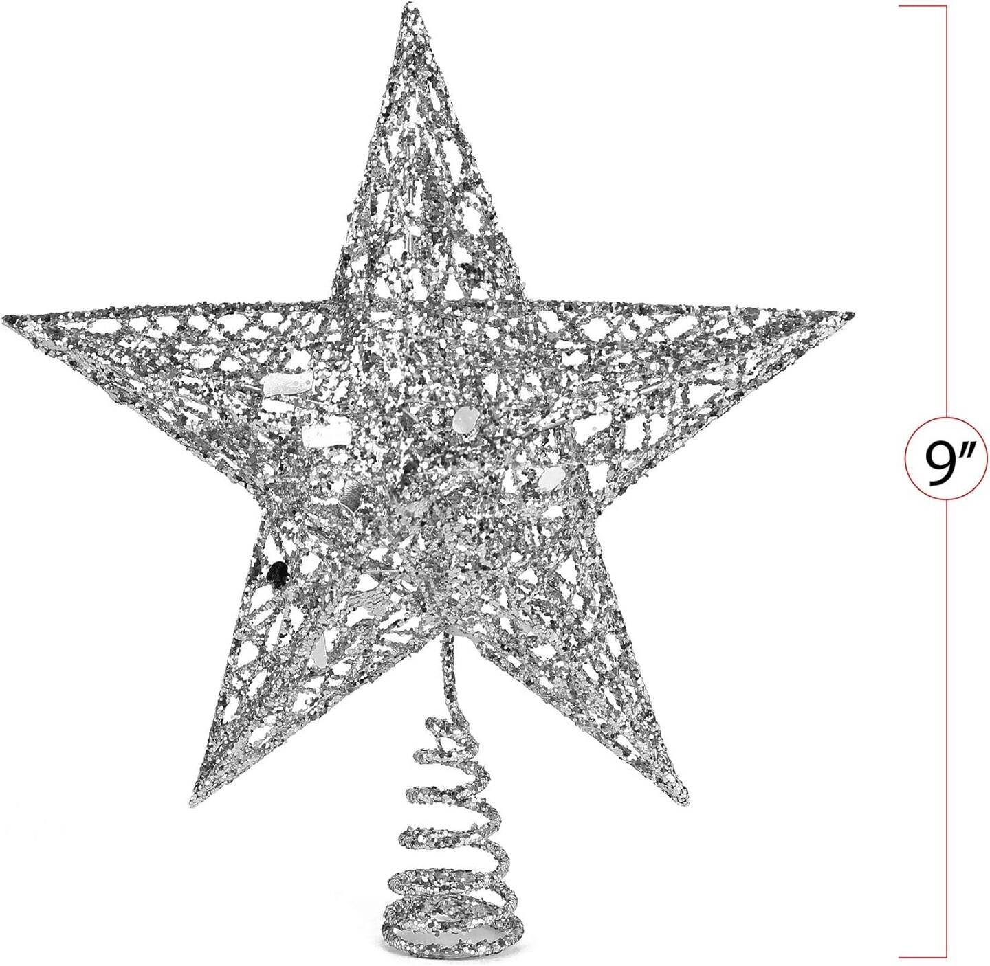 Silver Star Tree Topper - Christmas Silver Glitter Sparkle Star Ornament