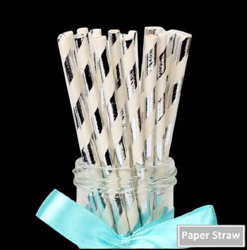 SILVER STRIPES Paper Straws*