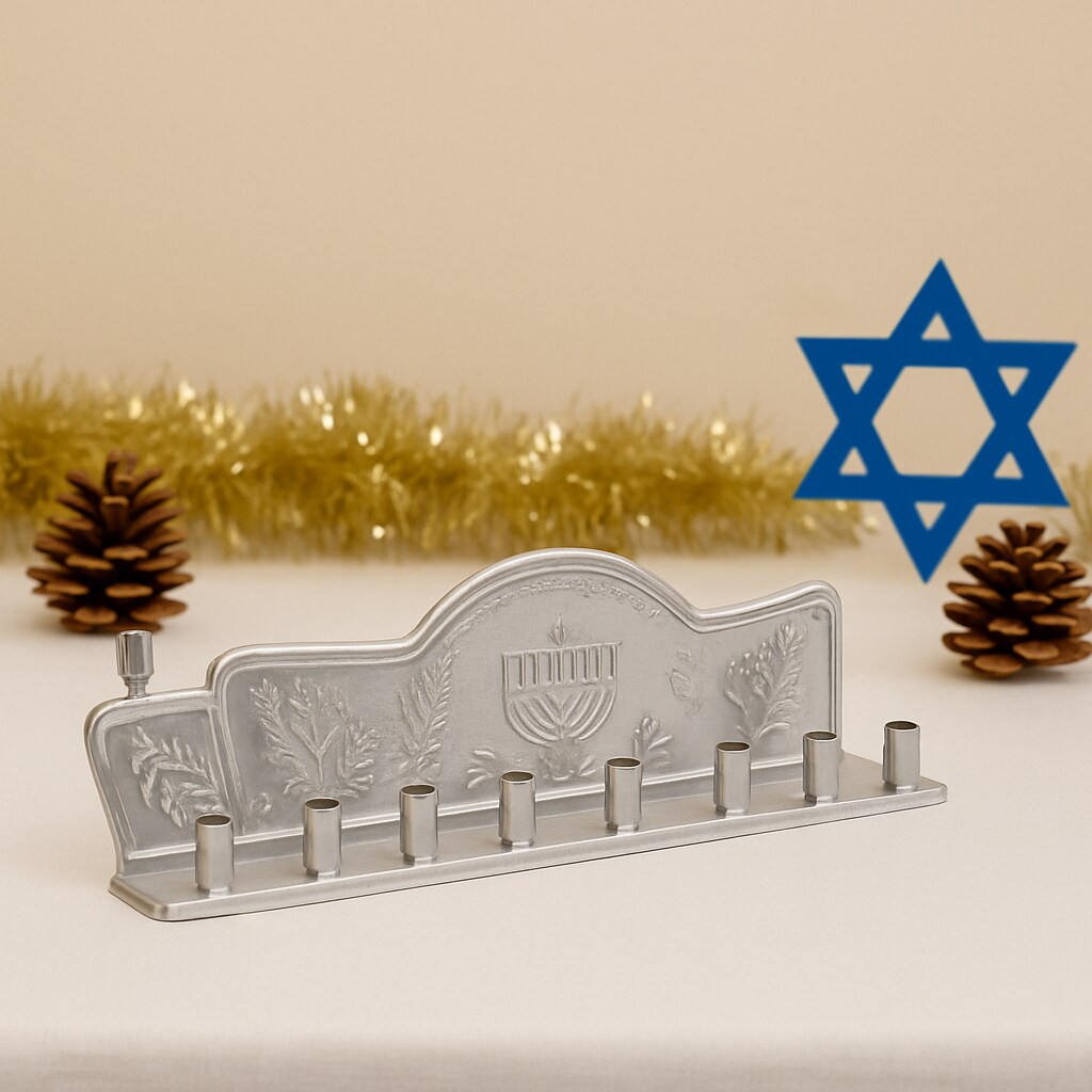 Silver Tin Menorah for Chanukah – Classic Judaica Hanukkah Candle Holder, 10"