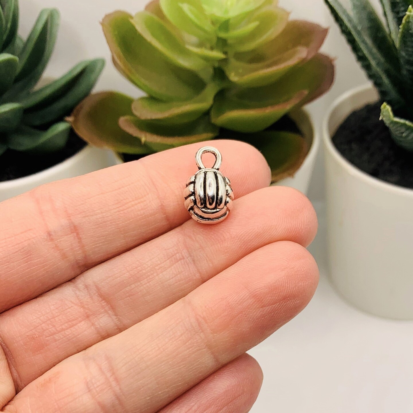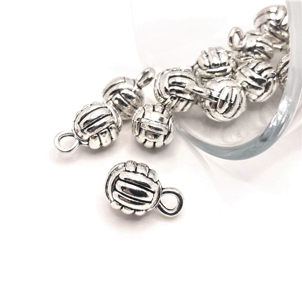 Silver Volleyball 3D Charms, 15x9mm