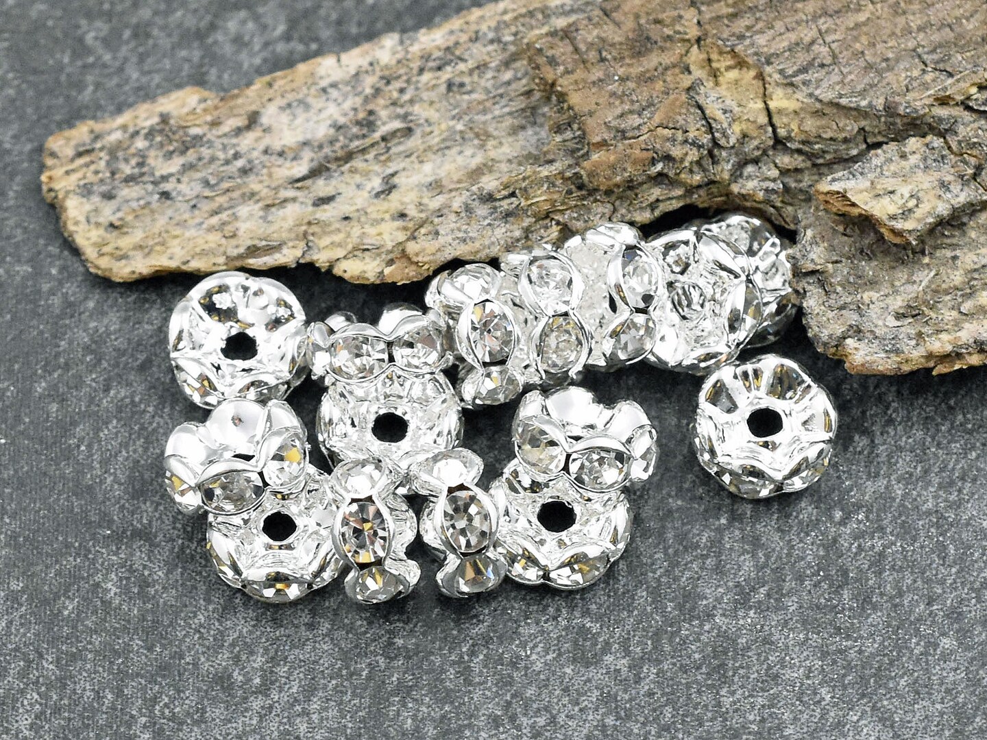 Silver w/ Crystal Rhinestone Wavy Edge Rondelle Spacer Beads
