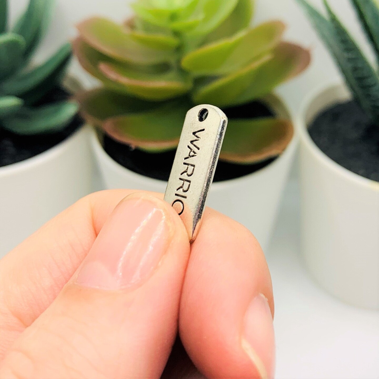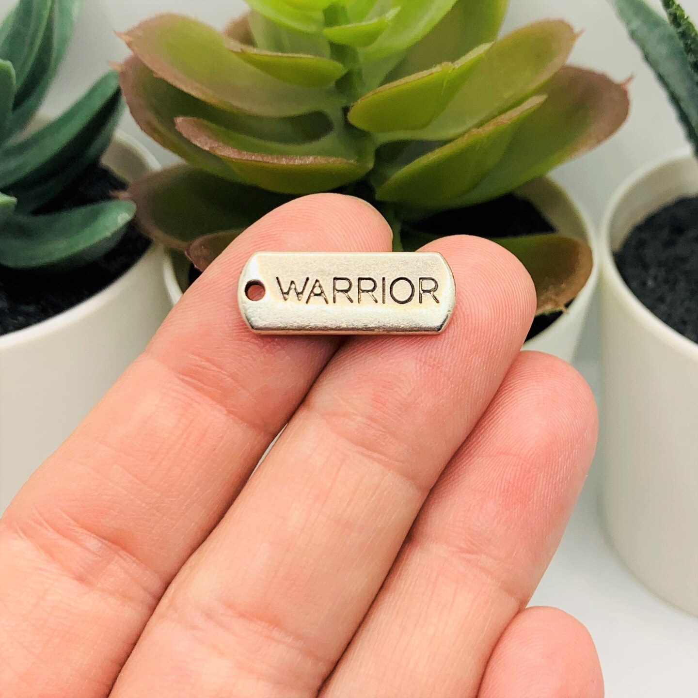 Silver Warrior Word Bar Tag Charms, 8x21mm