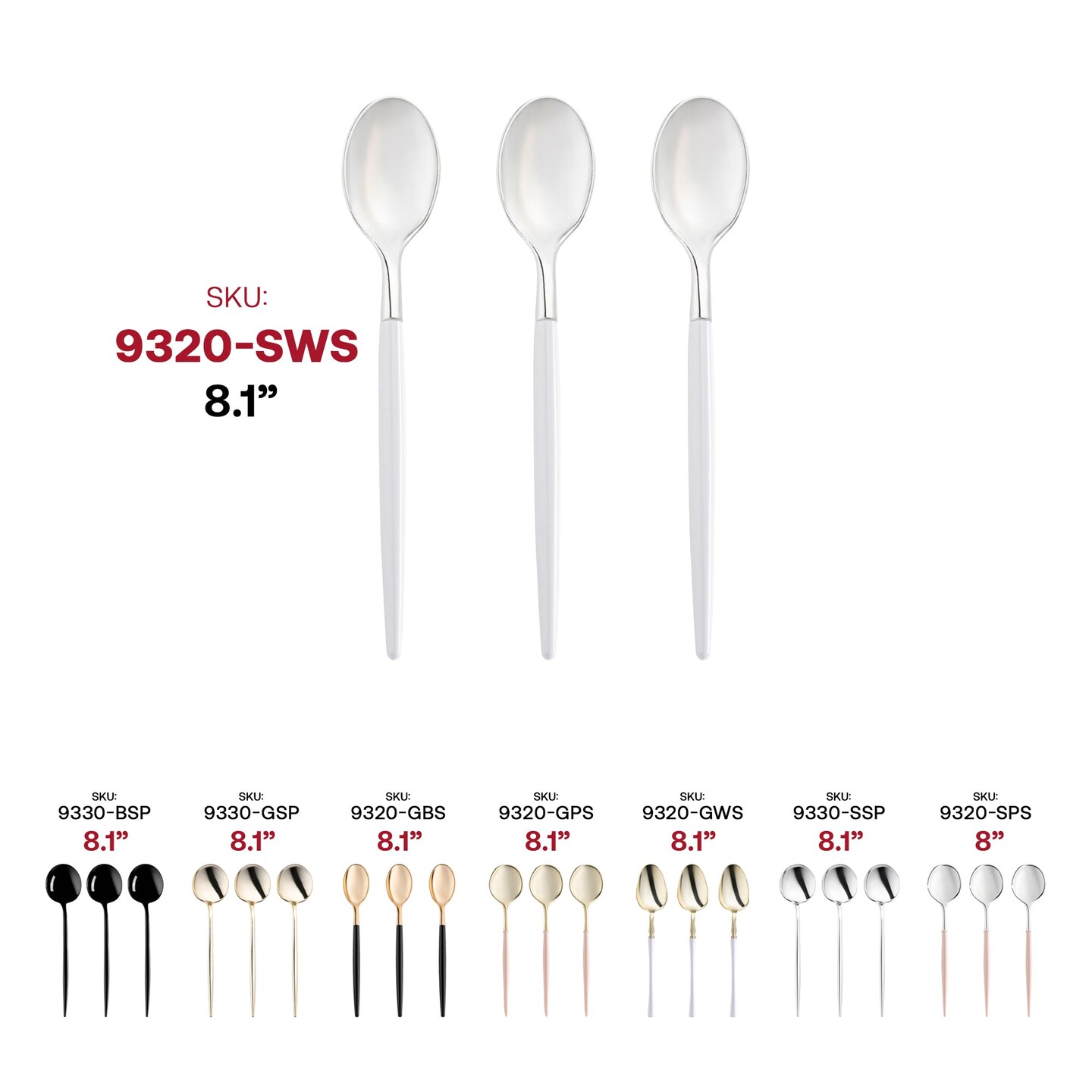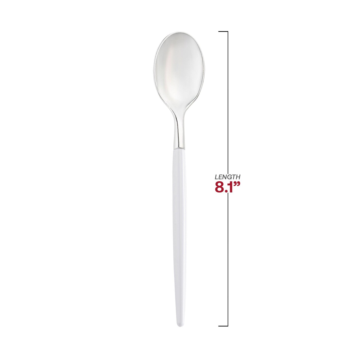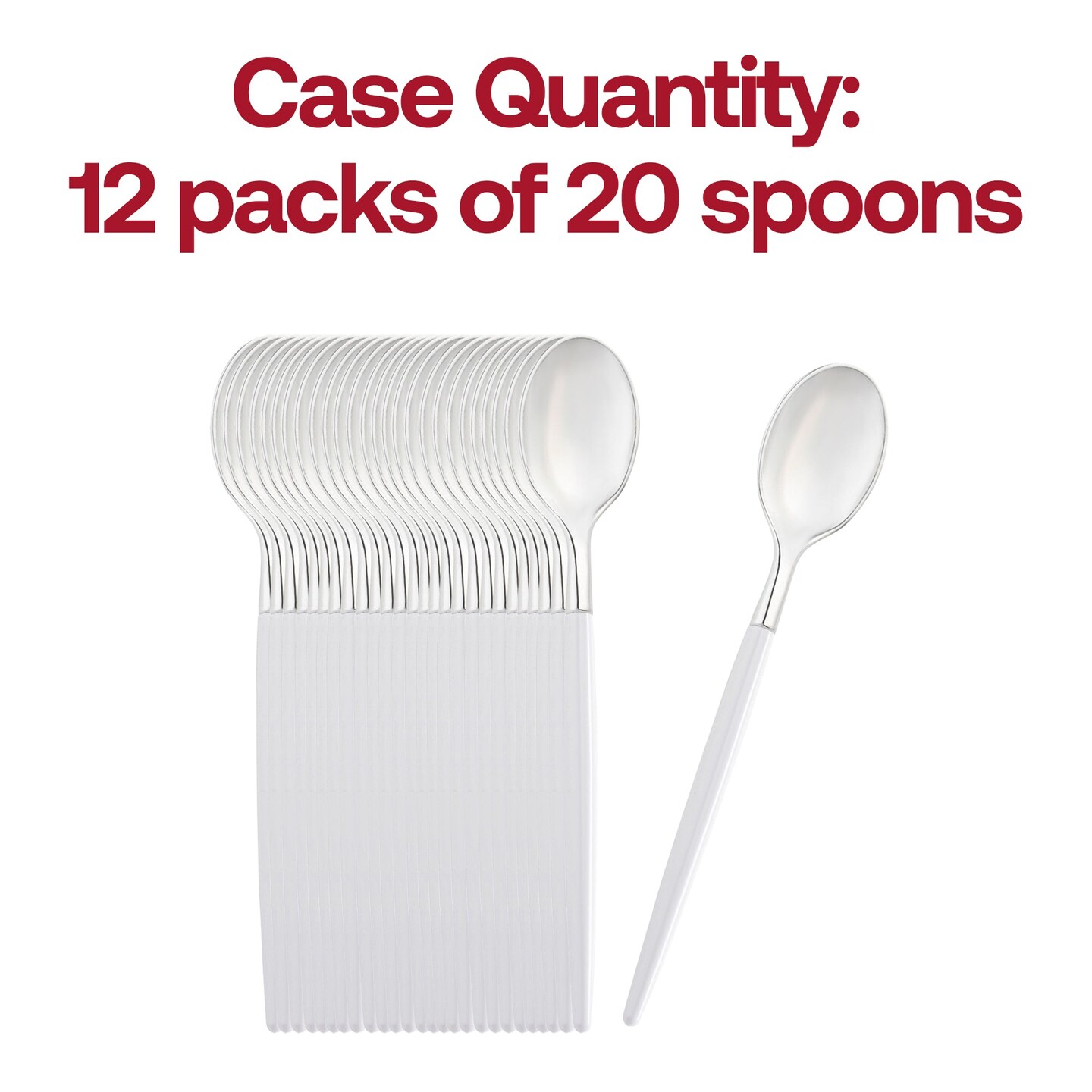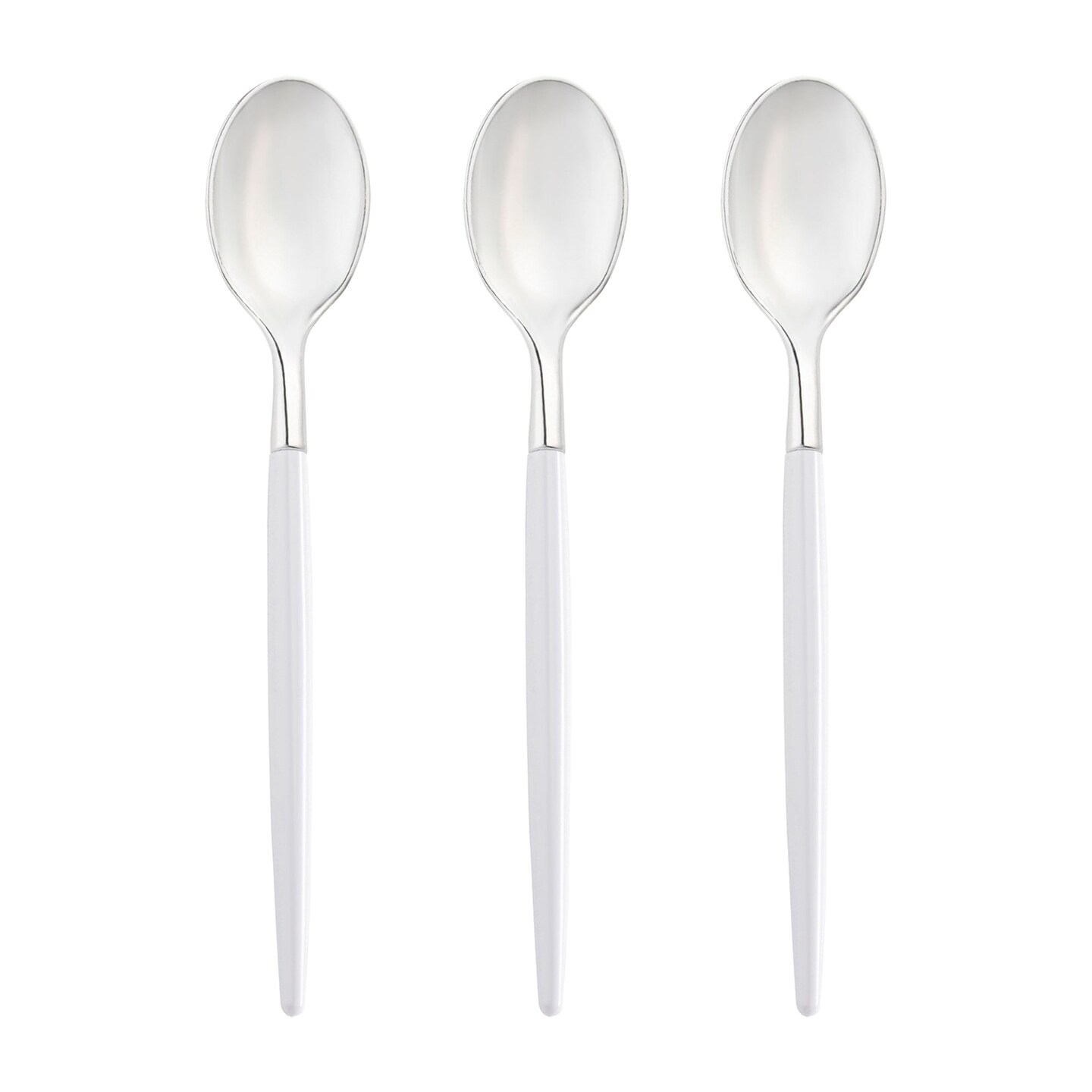 Silver with White Handle Moderno Disposable Plastic Dinner Spoons (240 Spoons)
